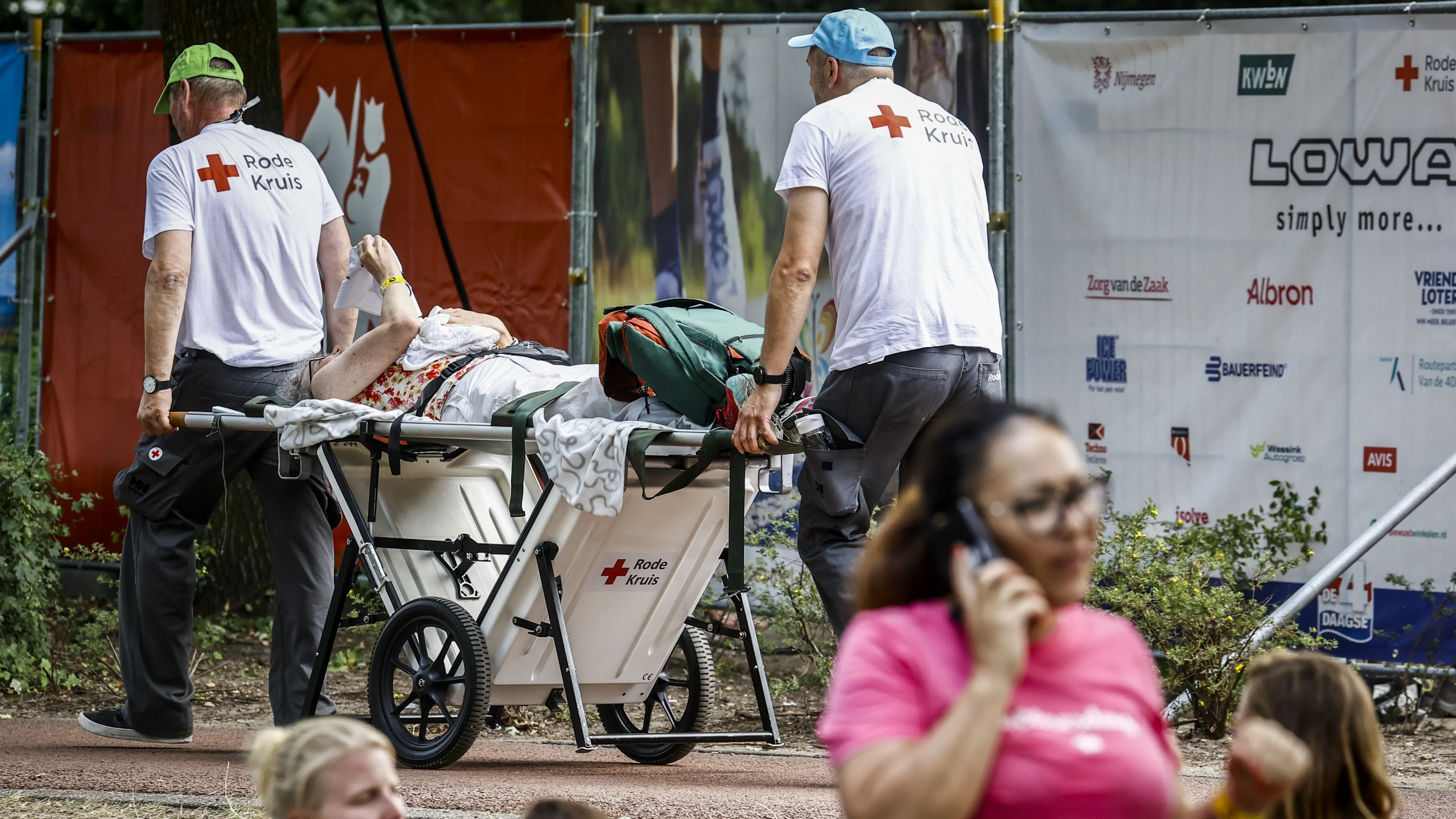 In de omgeving van Nijmegen was het woensdag ruim boven de 30 graden Celsius en vooral ‘s middags erg benauwd. "Wandelaars komen over de finish en nemen een glas alcohol. Dat hakt erin als je de hele dag energie hebt verbruikt, misschien wat weinig hebt gedronken en een zouttekort hebt. Dan ga je onderuit", aldus Han Pelster, operationeel leider van het Rode Kruis.