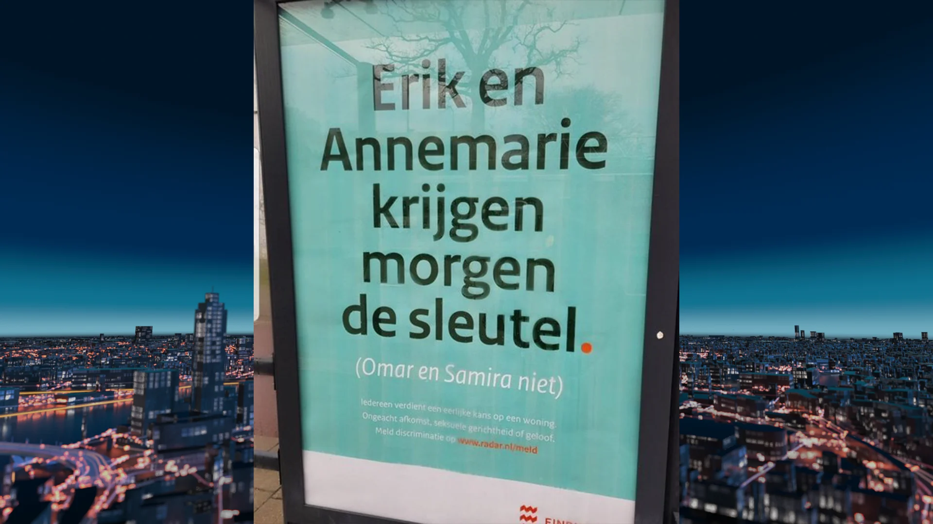In de gemeente Eindhoven is ophef ontstaan over een abriposter, als onderdeel van een overheidscampagne tegen discriminatie op de woningmarkt. "Erik en Annemarie krijgen morgen de sleutel", zo luidt de tekst op de poster, met daaronder in kleinere letters en tussen haakjes "Omar en Samira niet". De campagne is volgens velen "tendentieus en polariserend".