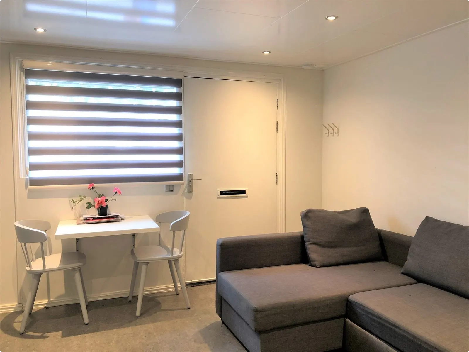 Volgens de makelaar is het kabouterhuisje uitstekend te gebruiken als pied-à-terre, een tweede woonhuis waar je af en toe naartoe gaat. Op foto's bij de advertentie is te zien dat het 'huis' beschikt over een mini-keuken, mini-eettafel en een mini-badkamer. Er is wel plek voor een grote koelkast. Een slaapkamer heeft het optrekje niet, een bed ook niet. Daar is amper plaats voor. Slapen kun je dus het beste doen op een slaapbank.