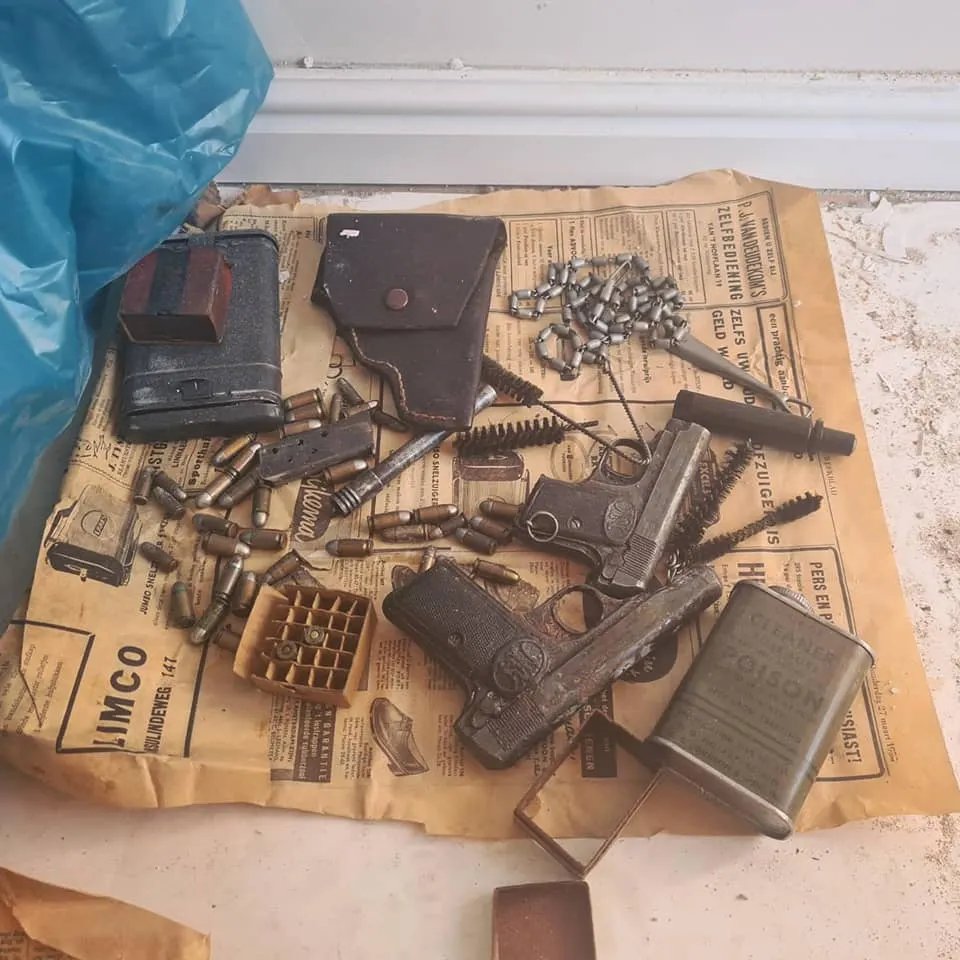 Het was een vreemde gewaarwording. Ramazan Corumlu uit Abcoude wilde zijn zolder verbouwen en vond iets vond wat hij totaal niet had verwacht. Bij het weghalen van de eerste gipsplaten stuitte hij op een plastic tas met daarin twee handpistolen.