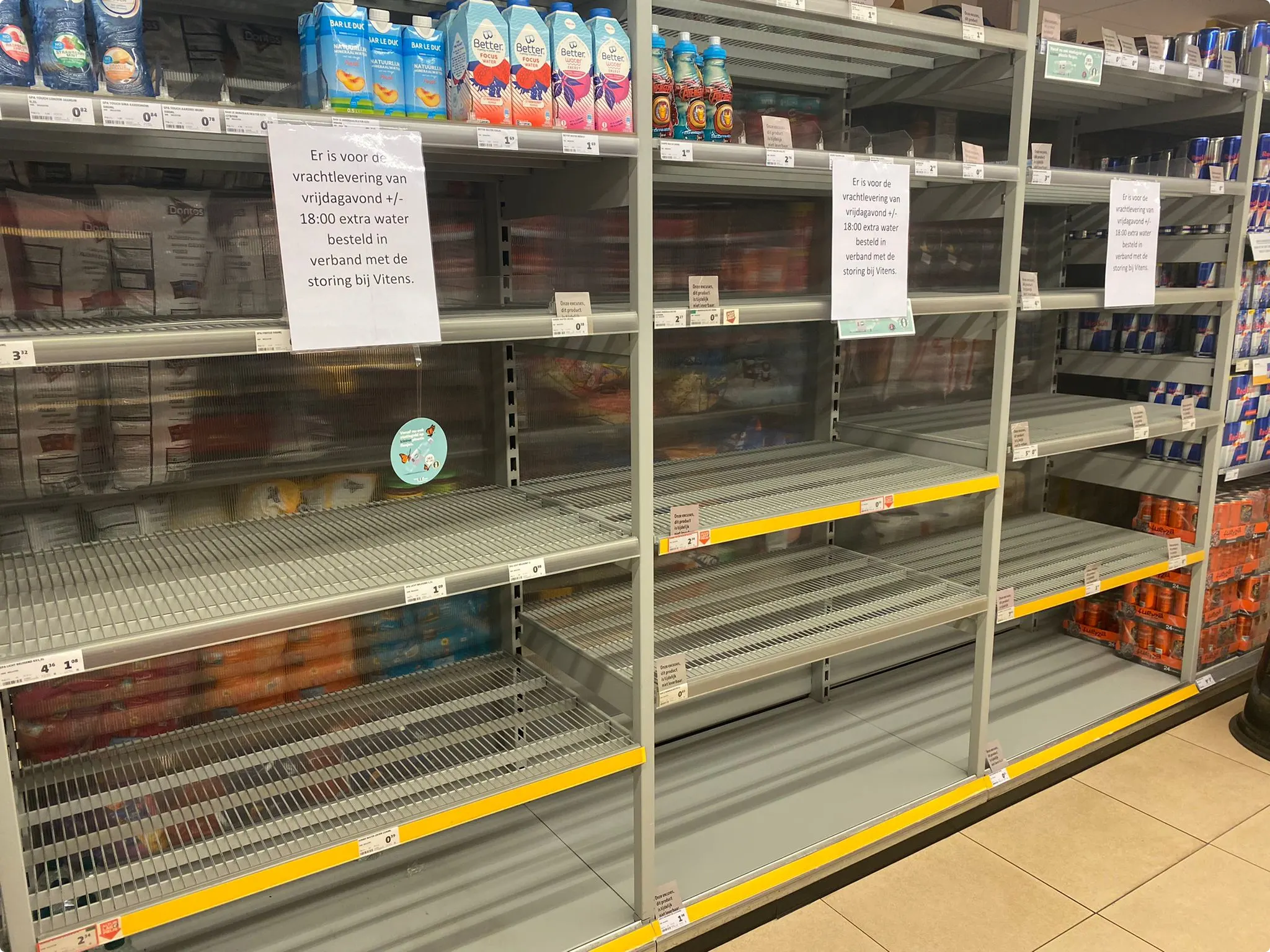 "Sinds gisterenavond is alles leeg. We hebben nog een kleine voorraad binnengekregen, maar onderweg naar het schap waren we die al kwijt aan klanten", zegt een supermarktmanager in Oldenzaal. Een supermarktmanager in Losser laat weten dat ze pas maandag weer een nieuwe voorraad krijgen, dus dat ze nu een weekend zonder water zitten. "We kregen nog wel wat van andere filialen, maar binnen vijf minuten was dat weer weg."