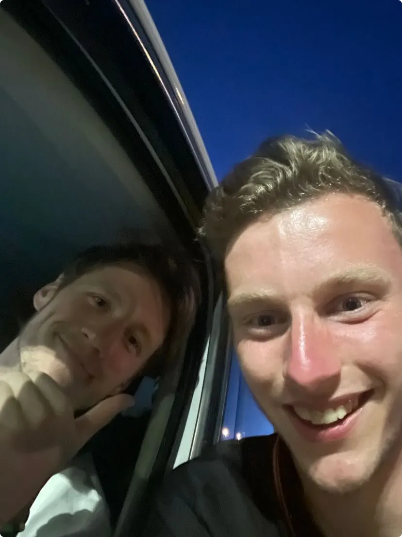 Hélène valt hem in de reden: "Met je broek naar beneden?". De Weghorst-fan reageert lachend: "Ja, niet helemaal maar wel half. Dus ik dacht ik rond het snel af en dan loop ik weer terug naar mijn vrienden. Op het moment dat ik terugloop kom ik langs die auto en het raam gaat in een keer naar beneden. 'Mooi shirt', hoor ik de man nogmaals zeggen."