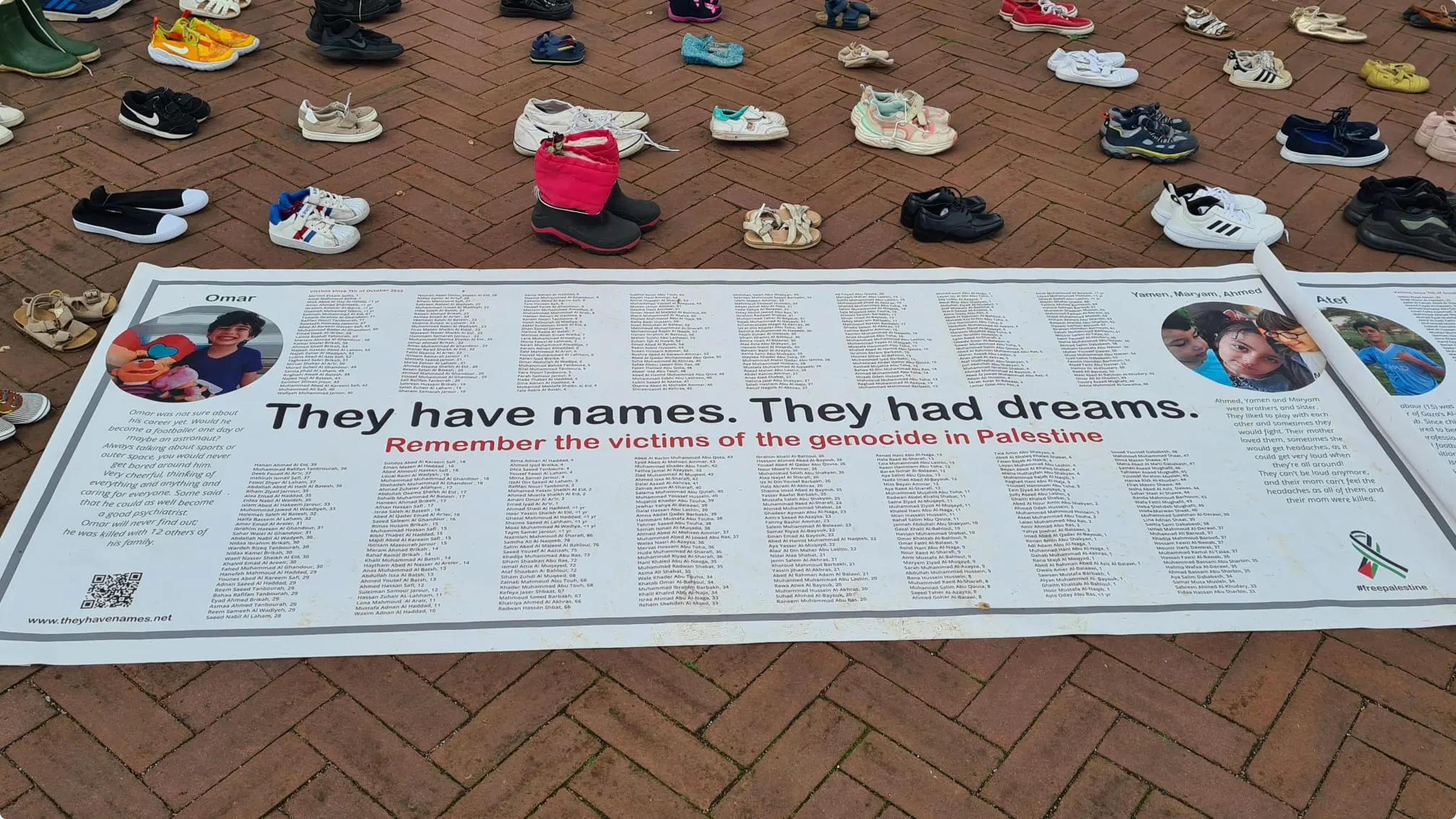 Op het Vredenburgplein in Utrecht werden in maart ook duizenden kinderschoenen neergezet om aandacht te vragen voor de Palestijnse kinderen die zijn omgekomen. Bekijk dat in de video hierboven, en .