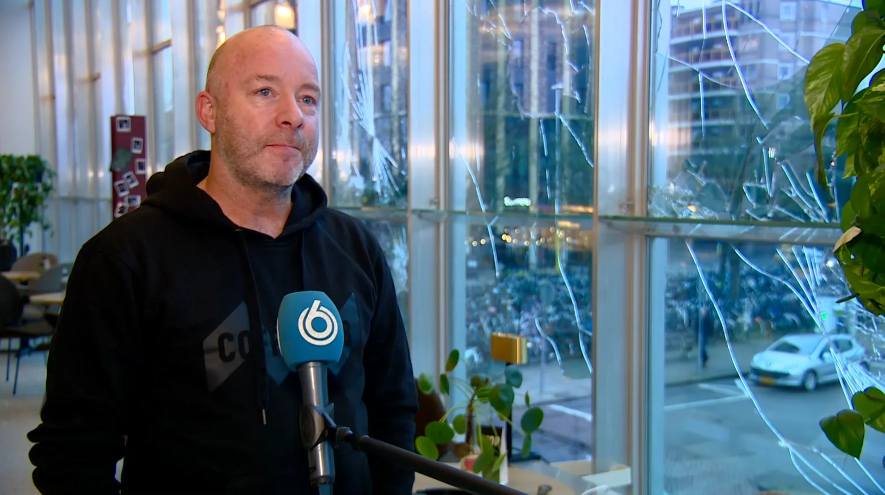 Ondernemer Jeroen Veldkamp runt samen met twee compagnons een koffiezaak in het station. Hij zag met lede ogen aan hoe relschoppers met stenen de glaswand van zijn zaak probeerden in te gooien. "Dan snap je het niet meer."