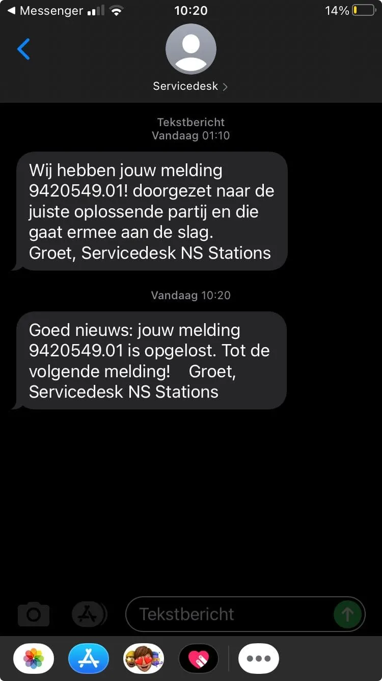 Rond half 3 kwam Annemarie thuis en de volgende ochtend kwam het bericht dat de melding was opgelost (zie afbeelding hieronder). Meer dan negen uur later was het gelukt. “Als ik er nu op terug kijk, krijg ik de slappe lach. Cynisch natuurlijk, want ik ben vooral boos. Dit mag niet gebeuren.”