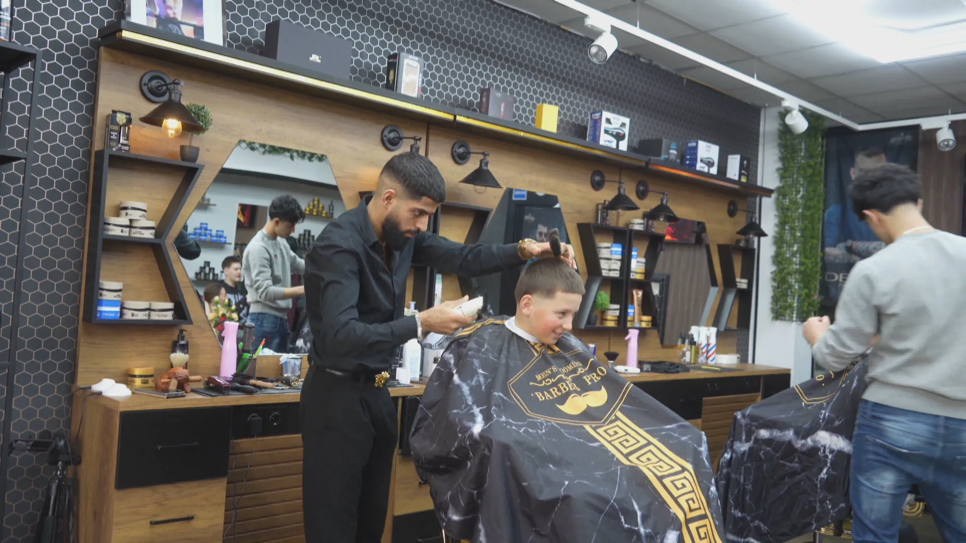 De kappers in de zaak aan de Hoofdstraat hebben maandag zo'n dertig kinderen geknipt. "We willen kinderen blij maken. En als de kinderen blij zijn, ben ik blij", zegt Ziyad met een lach.