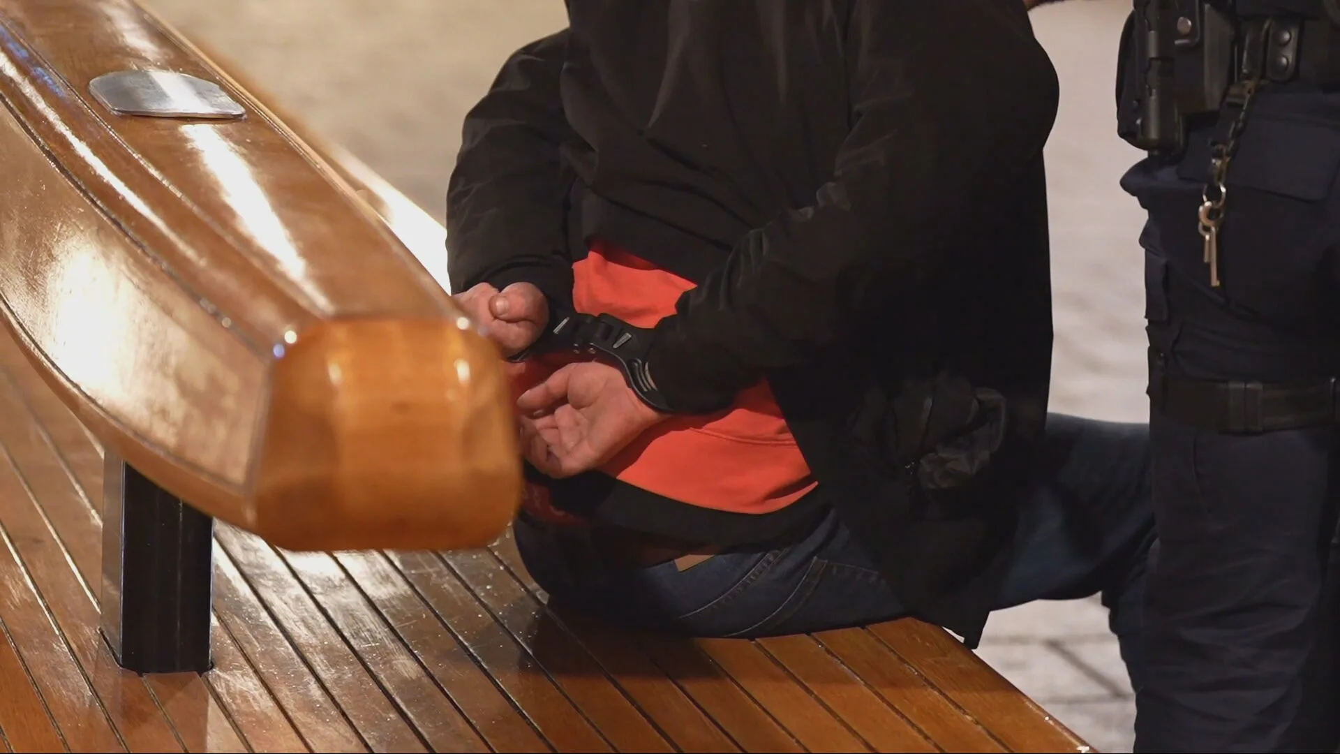 Agenten hebben een man aangehouden en zijn rugtas doorzocht, zag de correspondent. 'Reizigers worden op afstand gehouden en een deel van het station is afgezet.'