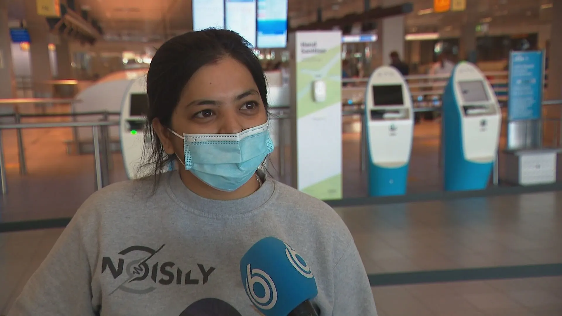 "Het is echt heel erg om te zien. Iedere seconde is er wel een nieuwe besmetting", zegt passagier Reetu Kashyap aangeslagen. Ze is op Schiphol en kan ieder moment in het vliegtuig naar Mumbai stappen.