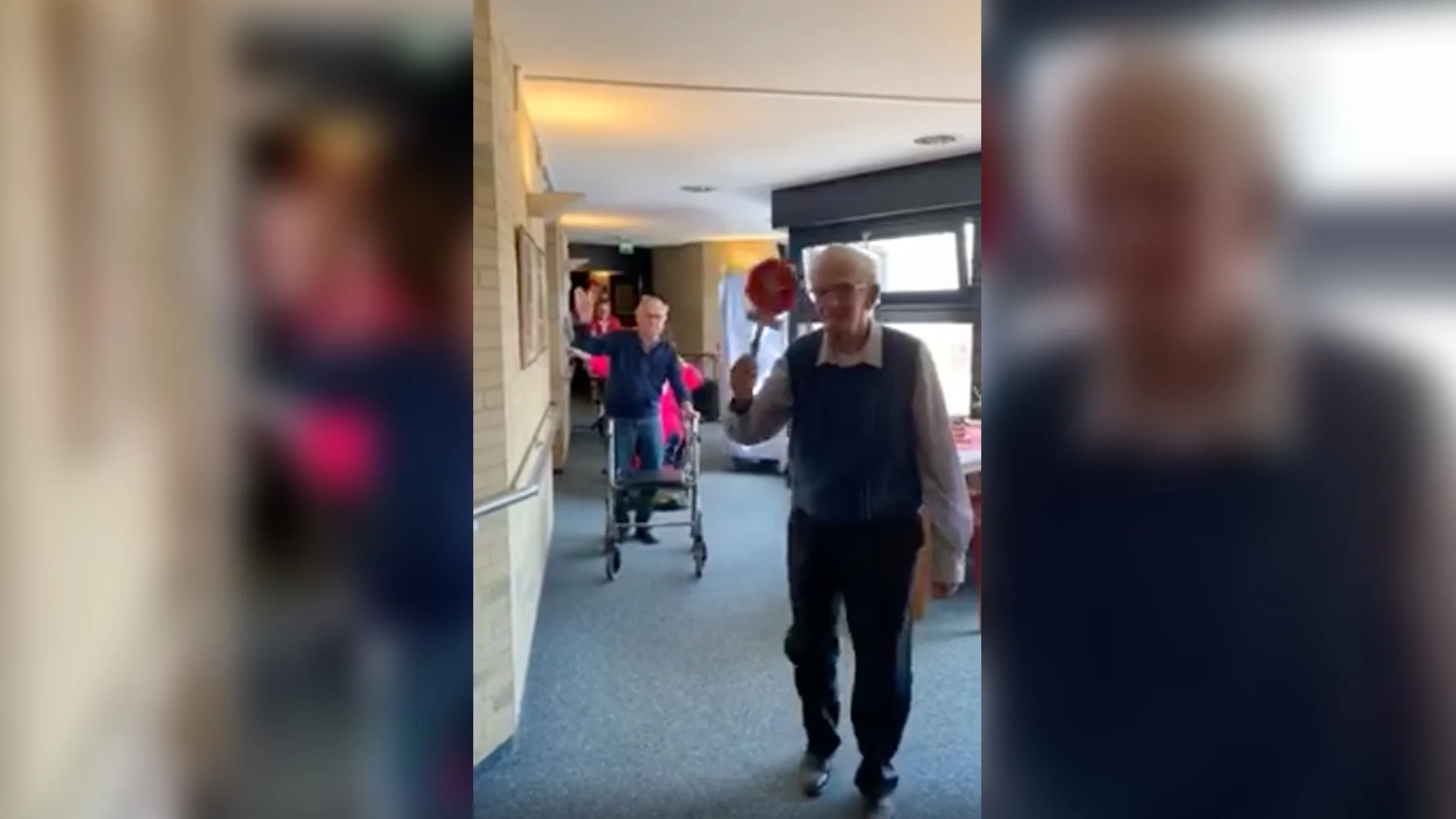 In verpleeghuis 't Vondelhuys in het Groningse Winschoten proberen ze de sfeer erin te houden ondanks alle narigheid van de afgelopen tijd. Daarom gingen de bewoners en het personeel verkleed en dansend door de gangen. Volg in ons liveblog het laatste nieuws over het coronavirus In 't Vondelhuys wonen vooral ouderen met lichamelijke of psychische klachten, maar ook enkele jongeren. De oudere bewoners hebben in ieder geval geen moeite om het tempo van coronahit Anderhalf van rapper Ali B bij te houden. Ze hebben de grootste lol, met een hilarisch filmpje tot gevolg.