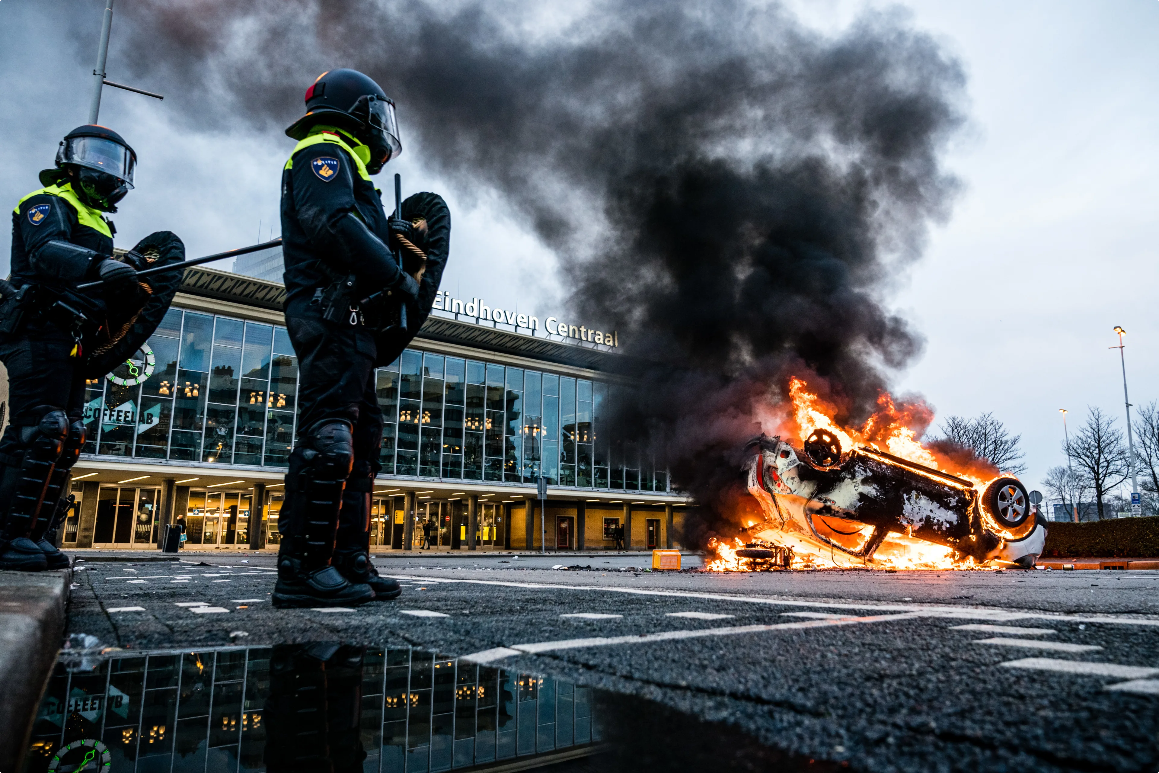 Op 24 januari verzamelde zich rond het middaguur een menigte op het 18 Septemberplein, uit protest tegen de avondklok. Rond 14.00 uur escaleerde de situatie. De Mobiele Eenheid voerde charges uit en dreef de groep relschoppers, geschat op enkele honderden, richting het Centraal Station van Eindhoven. Daar richtten de relschoppers een ravage aan, met forse schade tot gevolg.