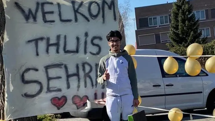 Vandaag kwam Sehraz weer thuis. Naar omstandigheden gaat het goed met hem. "Het gaat beter met me dan de andere dagen. Ik voel me fit, maar ik moet nog wel goed herstellen. Ik denk dat het uiteindelijk drie tot zes weken duurt voordat ik weer helemaal de oude ben", zegt Sehraz. De ouders, broer en zus van Sehraz zaten in thuisisolatie toen hij in het ziekenhuis lag. Broer Babor zegt eindelijk opgelucht adem te kunnen halen nu Sehraz weer thuis is: "We kunnen ons leven weer leiden. Het was een schrik voor iedereen, maar we hebben er nu het volste vertrouwen in dat hij er weer helemaal bovenop komt." Lees ook: Familie coronapatiënt Sehraz (16): 'Het ergste is dat wij nu niet bij hem kunnen zijn' Toen Sehraz vandaag thuis kwam, werd hij door de buurt opgewacht met een spandoek. "Met gepaste afstand natuurlijk, zonder handen of knuffels", zegt Babor.