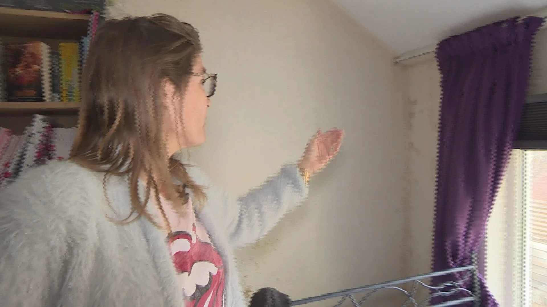 Nog altijd is er niets veranderd bij Vestia-huurder Monique van Damme uit Zoetermeer. Bijna 1,5 jaar geleden liet ze aan Hart van Nederland zien hoe ze al twaalf jaar in de schimmel woont. Vooral het kamertje van haar dochter, die al longproblemen heeft, is er erg aan toe. "Het is alleen maar erger geworden", vertelt Monique. "In de slaapkamer van mijn dochter loop je het zwart tegemoet."