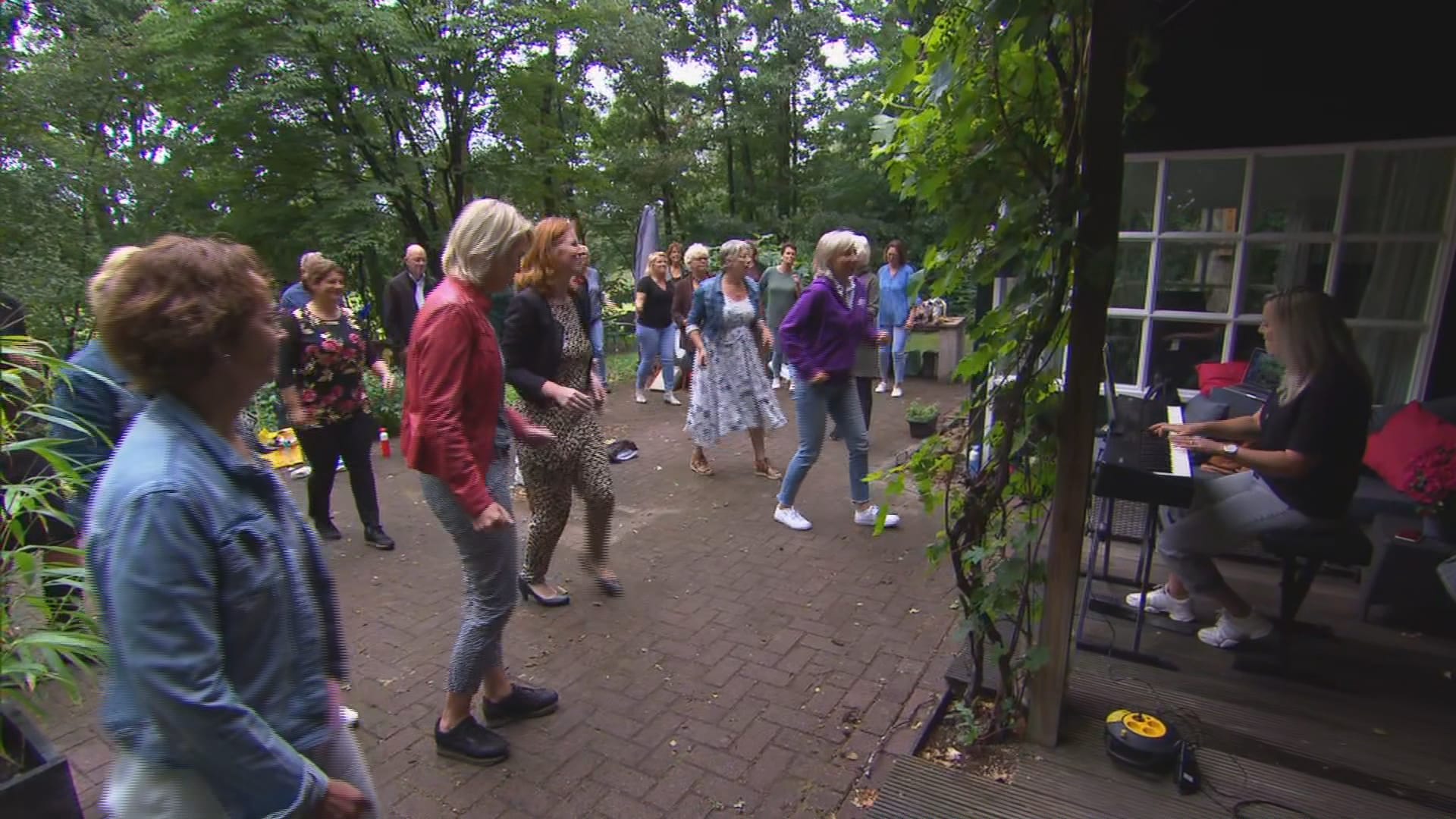 Veel koren nemen daarom het zekere voor het onzekere en repeteren voorlopig nog niet. Popkoor Première in Amersfoort durft het wél aan en repeteert op afstand in de grote achtertuin van dirigente Diane Ranselaar. "We zijn heel dankbaar dat we weer mogen", vertelt ze tegen Hart van Nederland. De afgelopen maanden hebben de leden van het Amersfoortse popkoor online met elkaar gerepeteerd, legt Diane uit. "Vanaf het beeldscherm werkt het toch niet goed, je hebt weinig steun aan elkaar", weet de dirigente. Ook waren veel zangers "behoorlijk schermmoe". Daarom werd twee weken besloten om toch weer fysiek samen te komen.