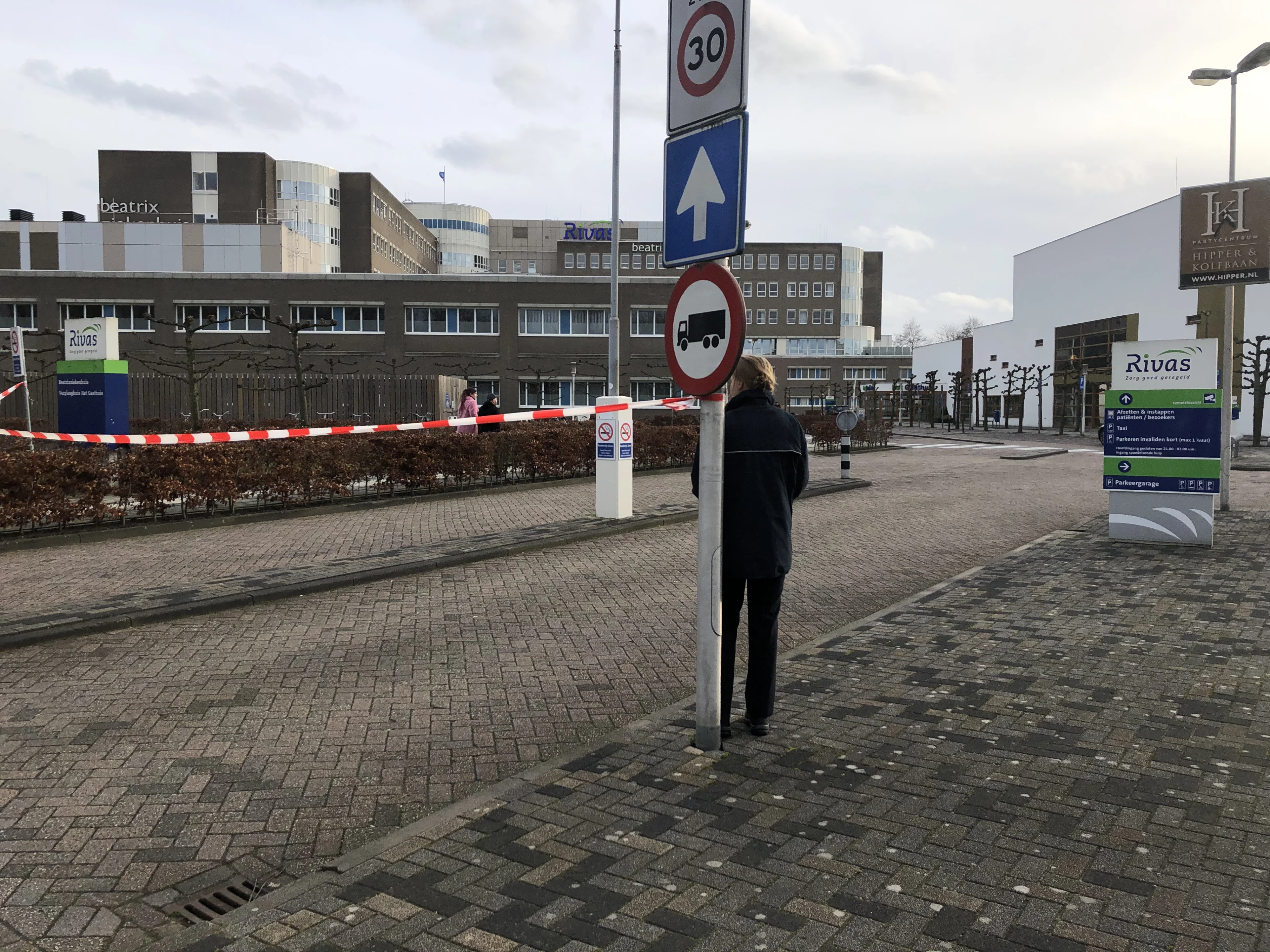 Het ziekenhuis is afgezet met rood-witte linten. Bij de hoofdingang staat een beveiliger die niemand anders dan personeel naar binnen doorlaat. Op de deur hangt een briefje: "In nauw overleg met het RIVM heeft Rivas Zorggroep besloten het Beatrixziekenhuis per direct te sluiten voor bezoekers en nieuwe patiënten. We doen dit om besmettingen met het coronavirus te voorkomen."