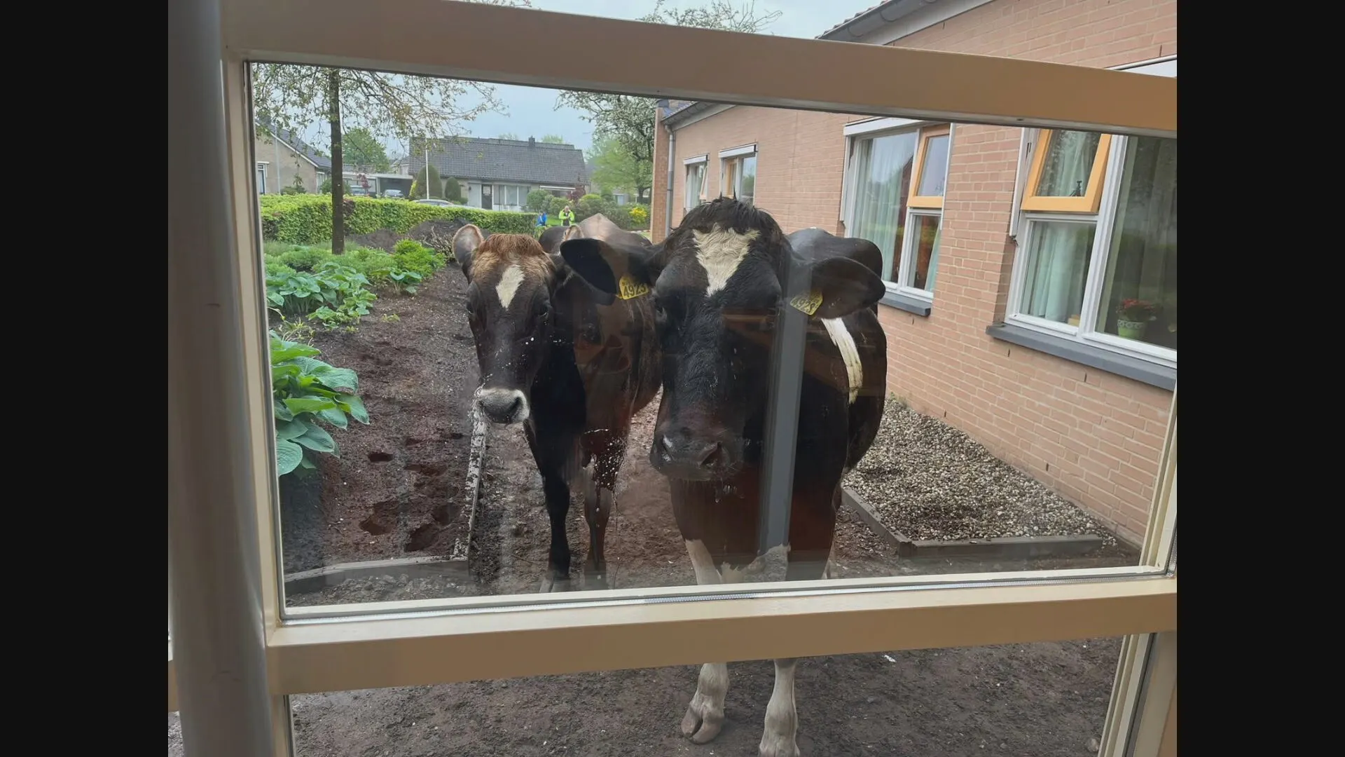 De dames banjerden onder meer over de plaatselijke begraafplaats. Het is onduidelijk hoe de koeien uit hun weiland hebben kunnen ontsnappen. Bewoners en medewerkers van het rusthuis Den Es stonden in ieder geval raar te kijken toen er plotseling twee koeien voor de ramen stonden.