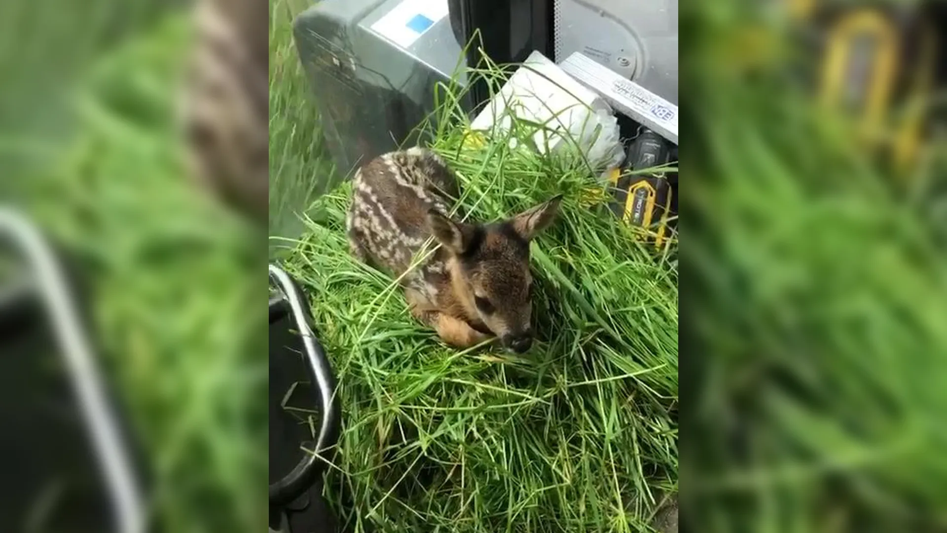 Nu het maaiseizoen weer is begonnen, ligt er voor reekalfjes een groot gevaar op de loer. De jonge dieren worden door hun moeders verstopt in het hoge gras, maar boeren kunnen de hertjes vanuit hun machines niet zien. Gelukkig kwam een boer uit het Overijsselse Geesteren er tijdens het maaien net op tijd achter dat er een jong reekalfje in het gras zat verstopt. Hij besloot het dier op te pakken en mee te nemen voor een ritje in de cabine van zijn trekker. Om ervoor te zorgen dat er geen mensengeur aan het dier zou kleven, werd het kalf goed verpakt in een dik pakket gras. Aan de rand van het maaiveld is het reekalf op een veilige plek weer losgelaten.