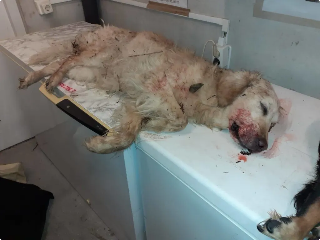 De zwaar toegetakelde honden werden bij de Munsterweg gevonden door wandelaars. Volgens de politie gaat het om een witte golden retriever en een donkere hond, vermoedelijk een kruising tussen een golden retriever en een herdershond. Volgens de medewerker van de dierenambulance heeft de donkere hond “een zwaar leven gehad”. De hond was oud en broodmager, aldus de medewerker.