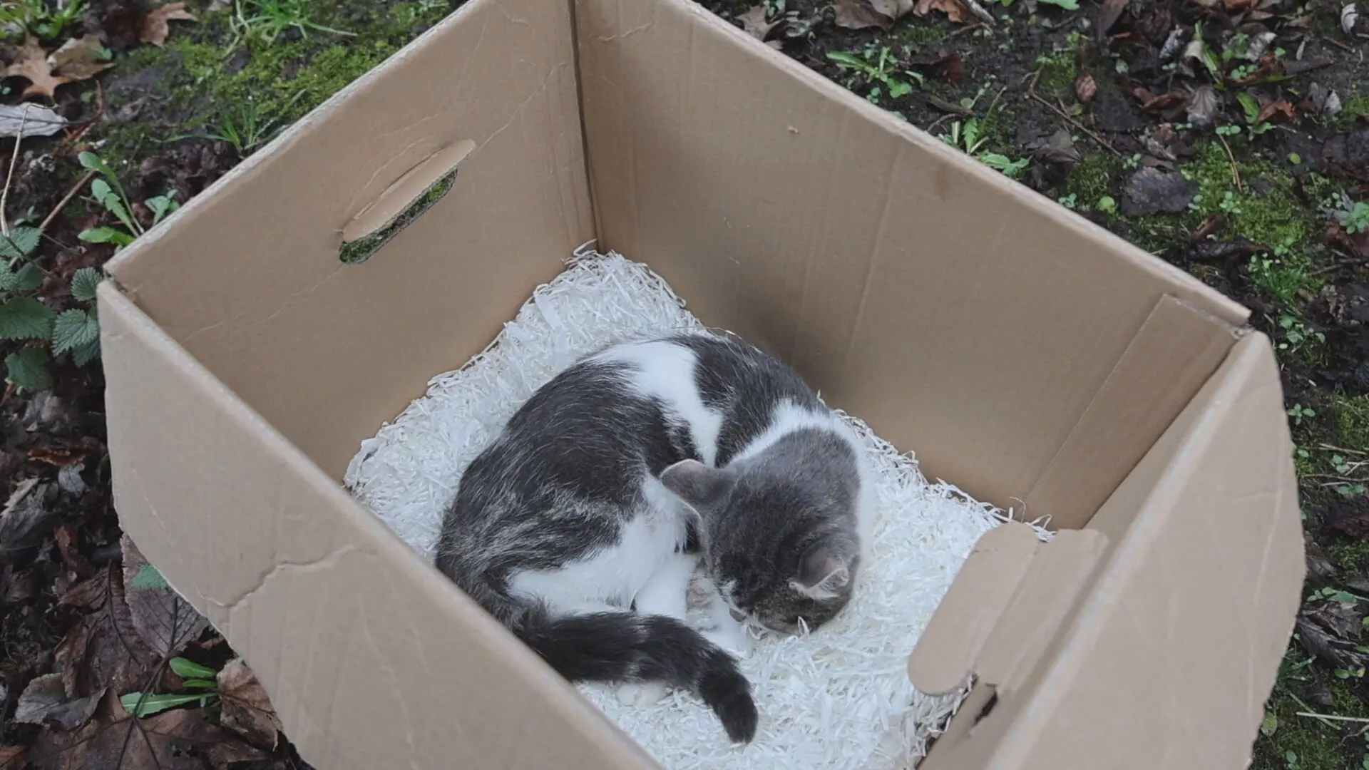 Vrijdagavond werd de doos met de kitten al opgemerkt door een man, maar die hoorde op dat moment niks. De volgende ochtend hoorde de man toch wat geluid uit de doos komen, waarop hij de dierenambulance belde.