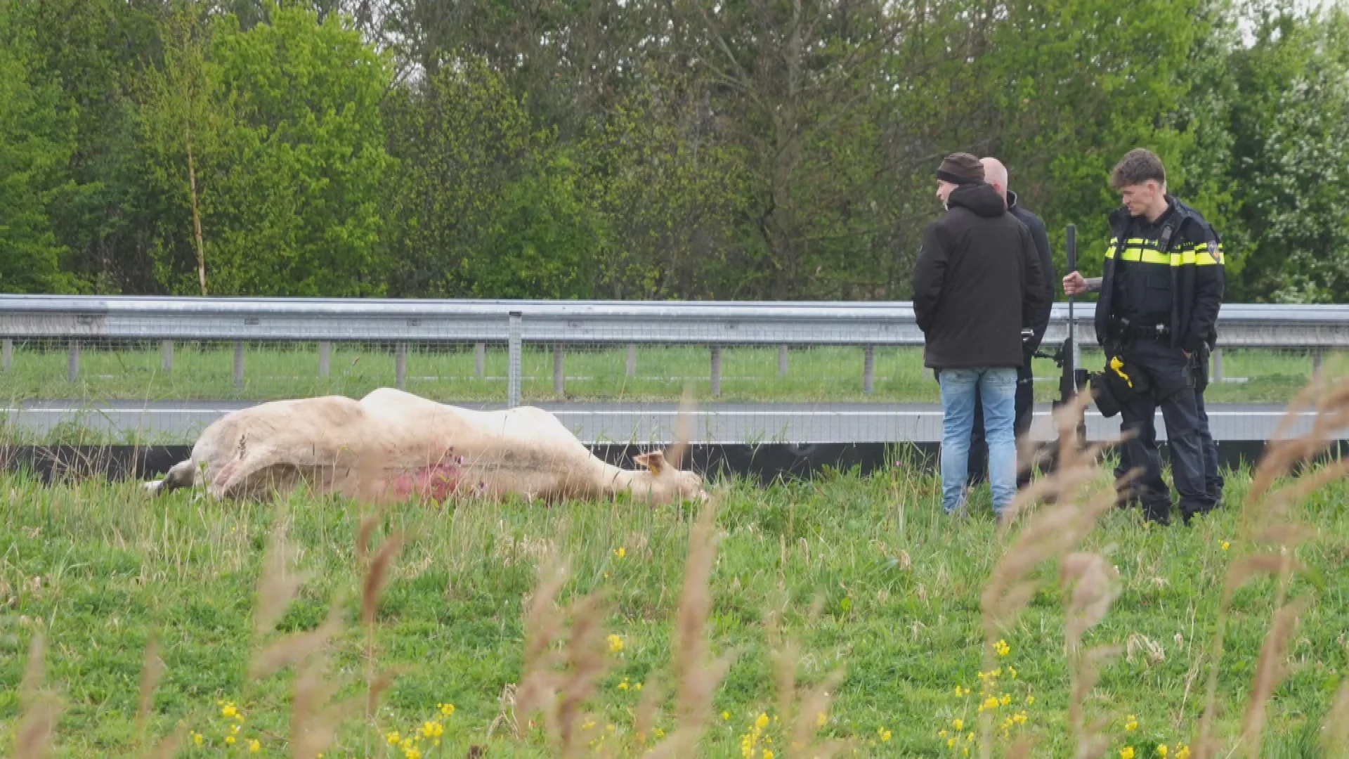 Agenten hebben de koe achtervolgd en meerdere pogingen gedaan om het dier te vangen, maar dat lukte niet. De koe liep een grasstrook in langs de ringweg N7, met het risico dat het dier de weg op zou gaan. Het verkeer op de ringweg werd stilgelegd.