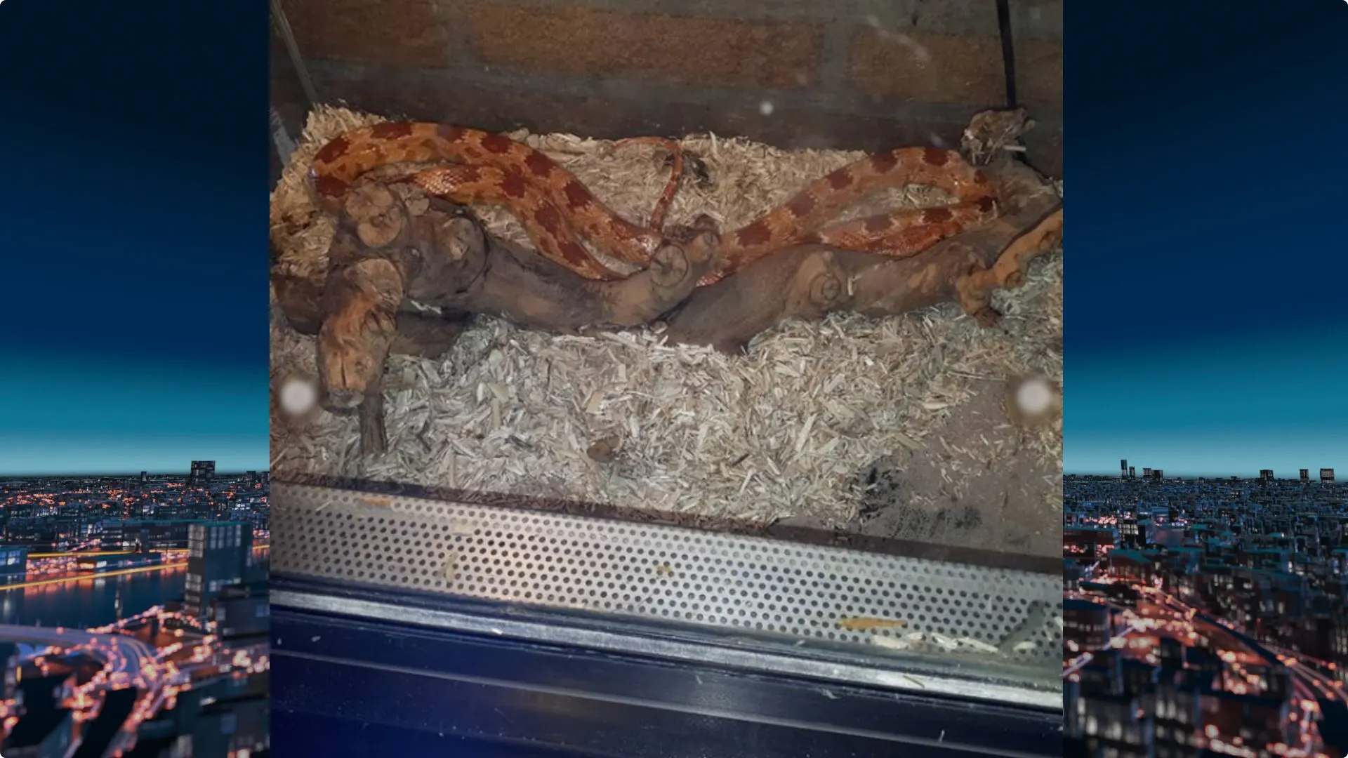 Daar was de eigenaar van de dieren "zeer content" mee. Op foto's is te zien dat in ieder geval twee honden, slangen en een amfibie-achtige (mogelijk een salamander) in de woning achter waren gebleven.