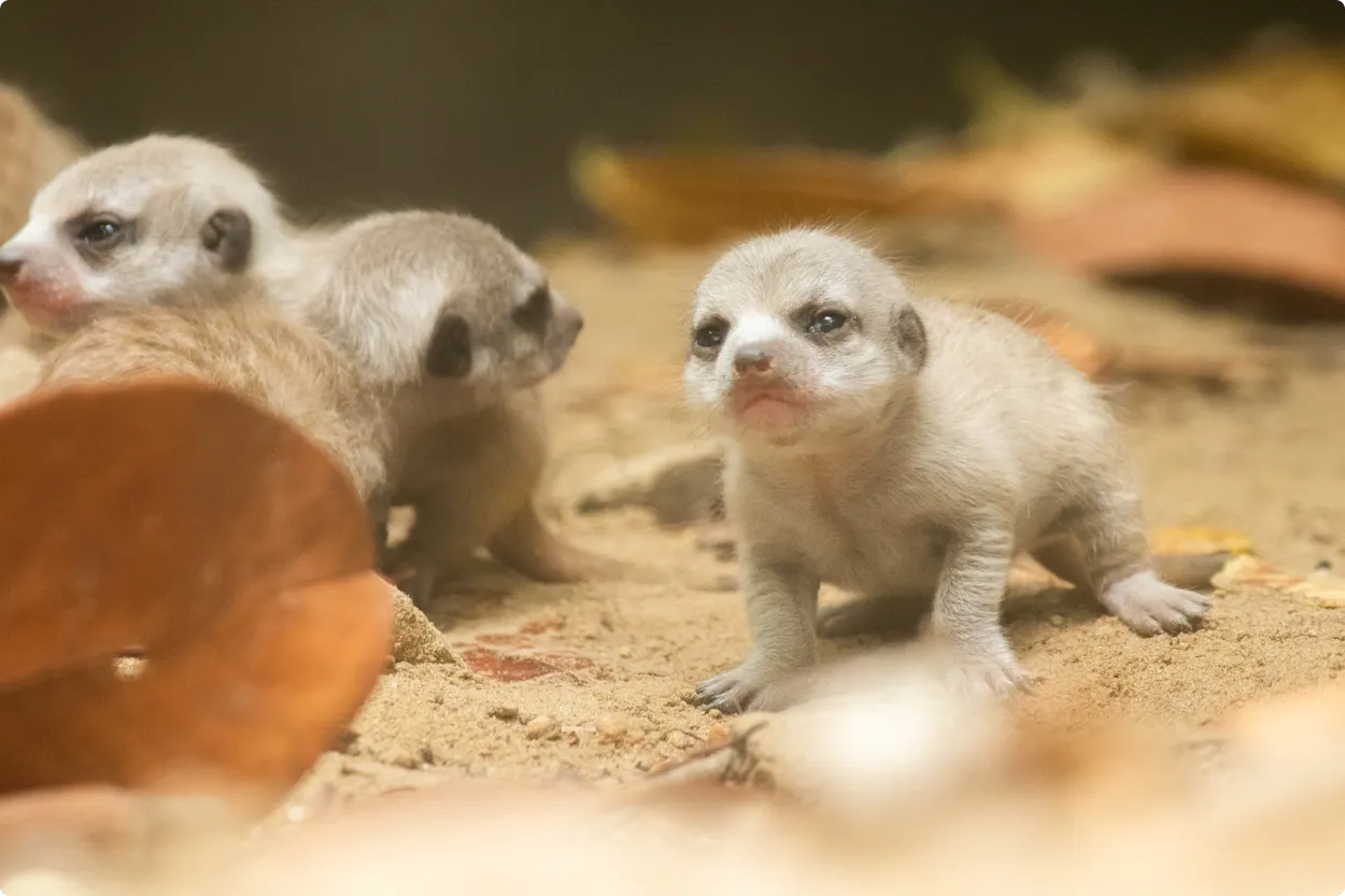 "Ze hielden zich eerst goed verstopt in hun burcht, maar laten zich steeds vaker aan de buitenwereld zien", zegt dierverzorger Marc Belt op de website van het dierenpark. De vier pasgeborenen blijven niet continu bij hun moeder. De zorg komt ook voor een deel op het bordje van de andere stokstaartjes in de groep terecht, zodat de moeder de kans krijgt om direct na de geboorte op zoek te gaan naar eten voor hun kroost.