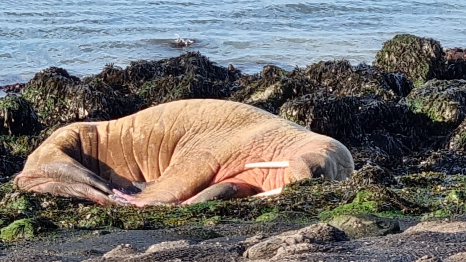 Zondagochtend vroeg kwam een walrus een paar uurtjes relaxen op werkeiland Neeltje Jans in Zeeland, blijkt uit een kiekje op het twitteraccount van wijkagenten Schouwen-Duiveland. Toen het zonnetje verdween en de mist neerdaalde, hield de grijze gigant het voor gezien en koos hij het ruime sop.