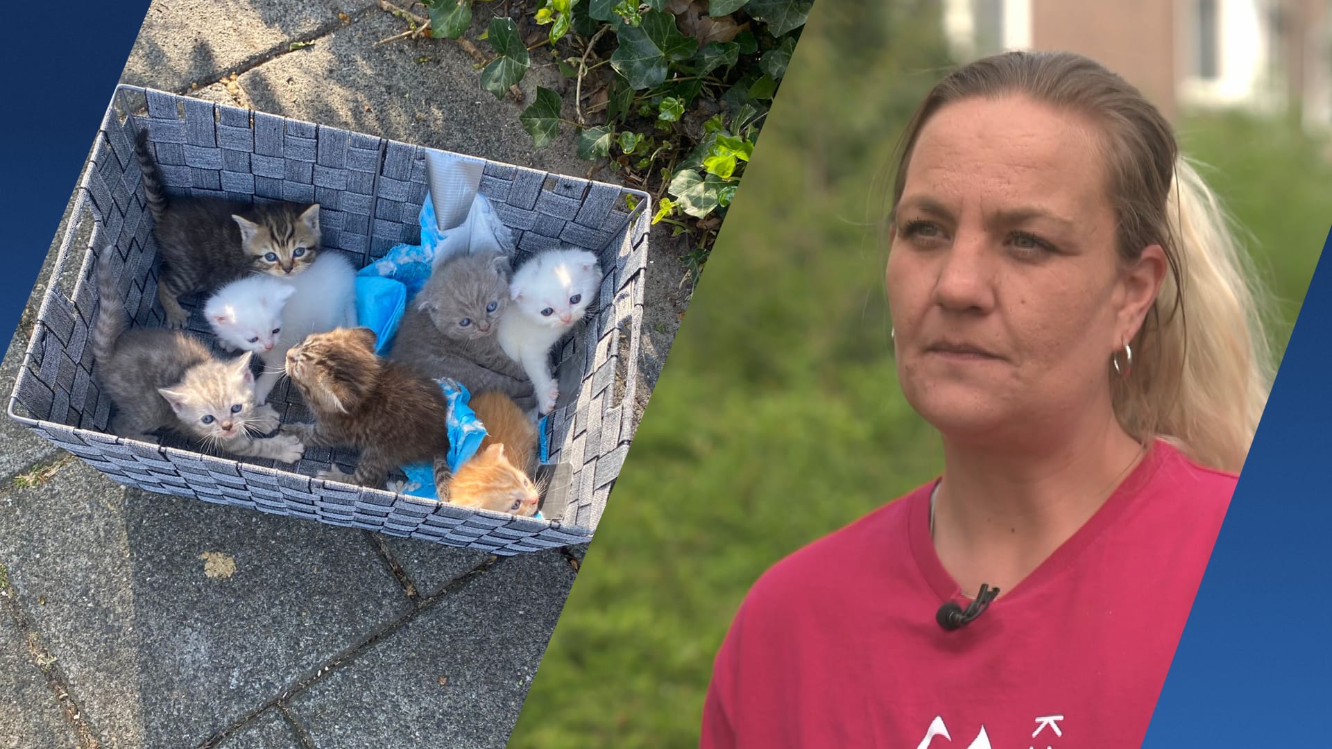 De kittens zijn vijf tot zes weken oud en worden inmiddels verzorgd door opvangmoeder Yvette Keveling. Zij woont vlak bij de plek waar de dieren zijn gevonden en staat in de wijk bekend als aanspreekpunt wanneer er katten worden aangetroffen. "Het ging om Scottish folds, een ras dat niet gefokt mag worden. Dan ga je er eigenlijk meteen van uit dat ze zijn gedumpt," vertelt ze.