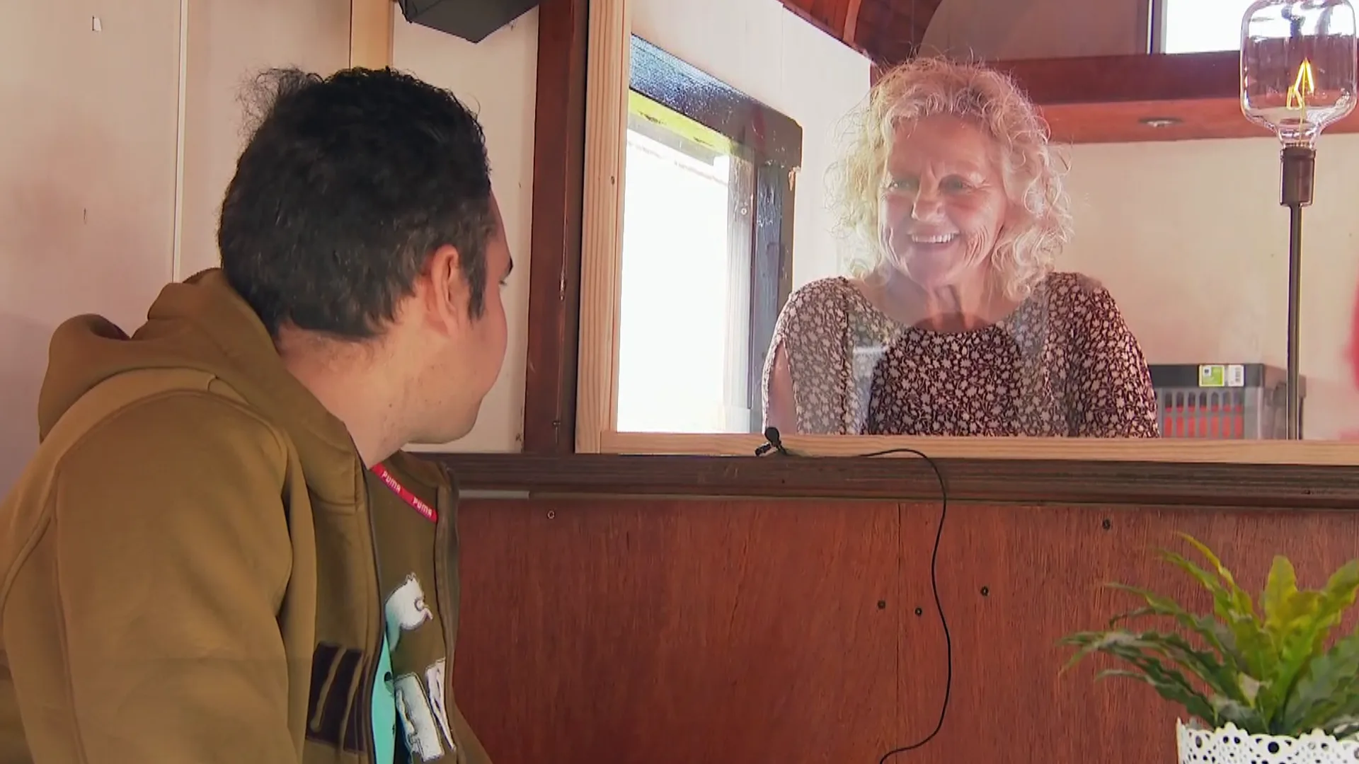 "De situatie is lastig voor Sancho", geeft zijn moeder toe. "Door zijn autisme wil hij weten hoe alles is geregeld, maar je weet nu niet precies hoe het gaat lopen. Zijn ritme is ook veranderd." Het feit dat hij niet naar zijn ouders toe kan maakt Sancho verdrietig. Hij kan nu bijvoorbeeld ook niet even hun hondje zien. Maar zijn moeder zegt trots dat hij zich er 'onverwachts goed doorheen slaat'. Lees ook: Tranen door bezoekhuis: 'Ik miste mijn moeder heel erg' Vandaag kan Sancho zijn moeder weer even zien. Zijn vader kon er niet bij zijn. Er zit weliswaar een plastic scherm tussen hen in, maar het voelt voor hen veel beter dan videobellen. De ontmoeting vindt plaats op een bijzondere plek, namelijk in een vrolijk versierde koek-en-zopie-keet. De keet trekt de komende tijd langs verschillende instellingen van Stichting Philadelphia Zorg.