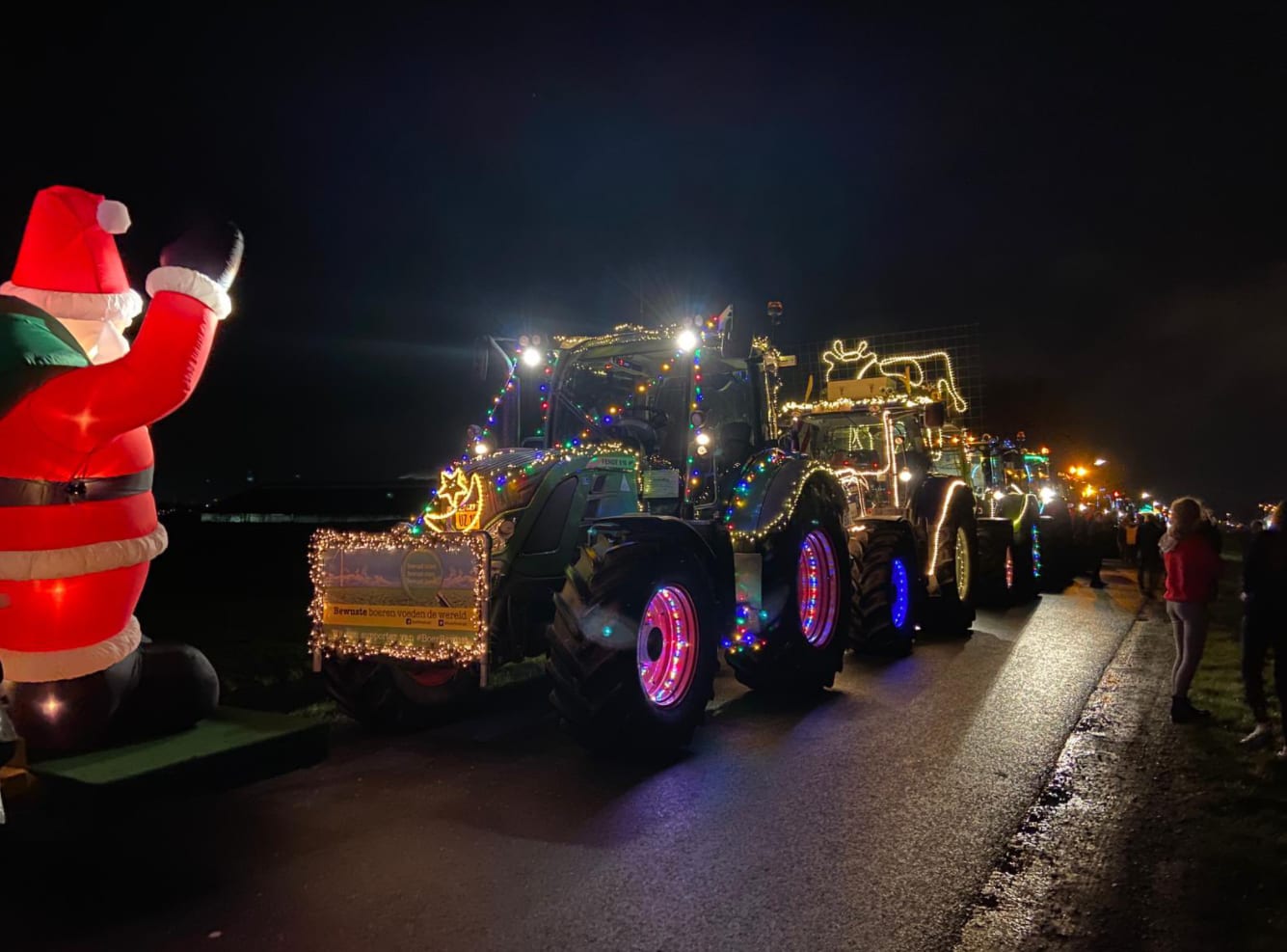 Het was een ware lichtjestocht: ruim 200 trekkers, versierd met kerstverlichting, reden zaterdag door de provincie Noord-Holland om voedselpakketten af te leveren bij mensen die een moeilijk jaar achter de rug hebben. De boeren in Noord-Holland bezorgen in totaal zo'n twintig pakketten. "Die pakketten zijn voor personen waarbij het dit jaar niet heeft meegezeten", vertelt Ad Baltus, een van de initiatiefnemers.