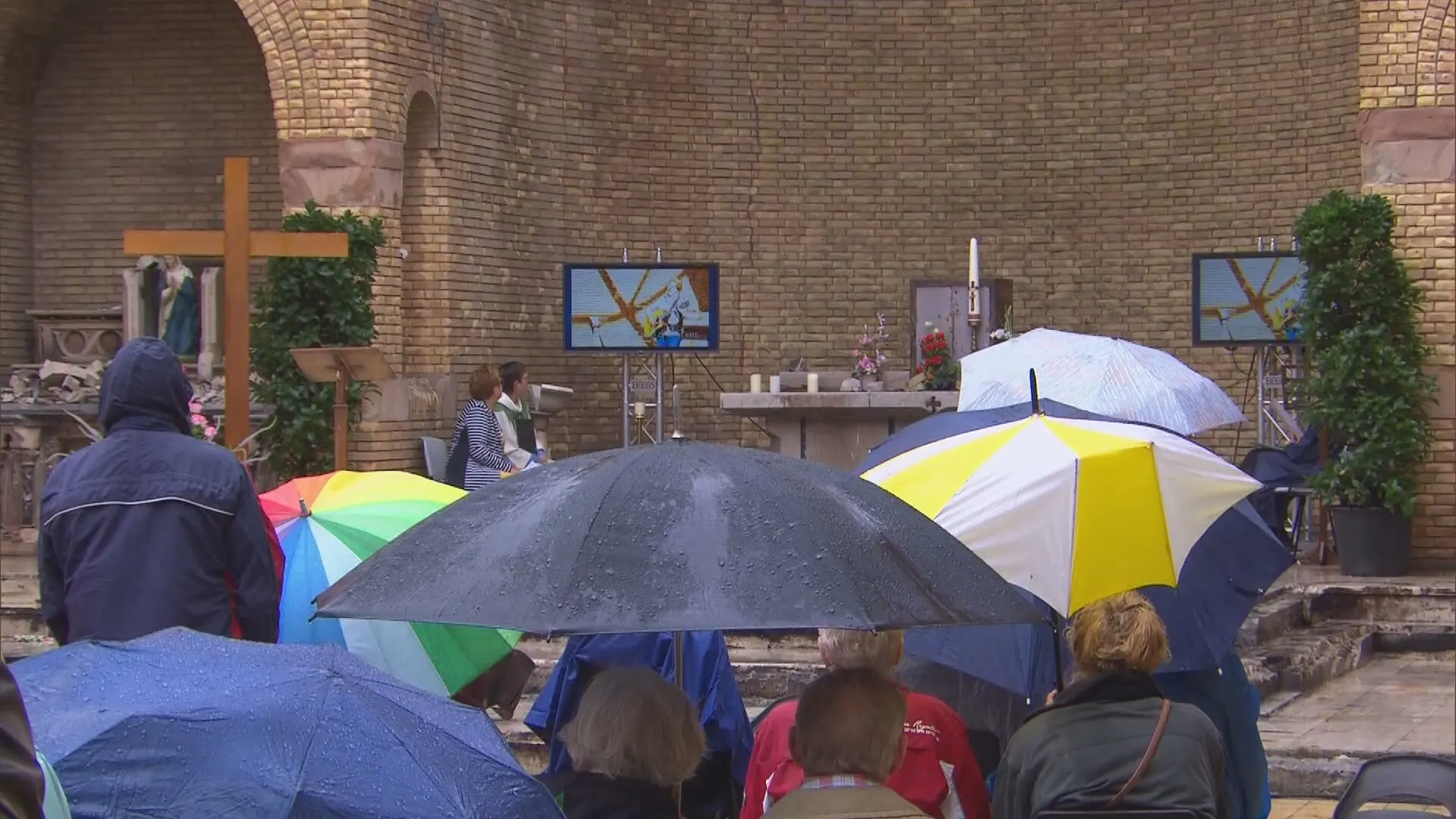 Met paraplu's en regenkleding zaten inwoners van Hoogmade zaterdagmiddag voor het eerst weer in de Onze-Lieve-Vrouw-Geboortekerk nadat die vorig jaar was afgebrand. De kerk heeft door de verwoestende brand geen dak meer en het regende tijdens de dienst flink, maar dat maakte de inwoners niets uit: "Het was een emotionele, maar geweldige eerste dienst." Door de brand, die vorig jaar in november woedde, stortte de torenspits in en ging het dak van de kerk in vlammen op. Bij de rooms-katholieke kerk waren werkzaamheden aan de gang. De brand ontstond tijdens het afbranden van de verf.