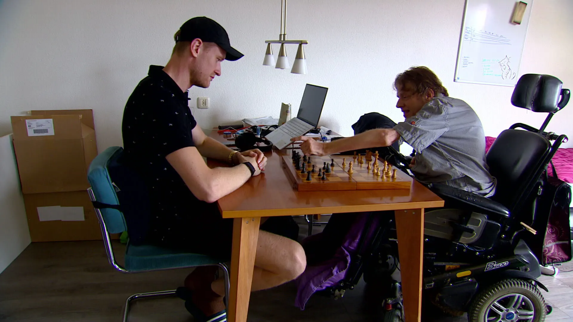 De twee hebben het erg gezellig gehad in quarantaine en Maarten heeft er ook een boel van geleerd. “Mijn beeld van mensen met een lichamelijke beperking is heel erg veranderd, in positieve zin”, blikt hij terug. “We hebben gewoon een goede klik, dus het werkt daardoor, daar hebben we misschien ook wel geluk mee.” De twee doden de tijd voornamelijk met schaken. En: “Maarten gaat ‘s morgens een wandelingetje maken, even joggen om zijn lichaam in shape te houden. En ‘s middags en ‘s avonds maak ik een blokje door het park. Dan kijk ik heel goed of ik niet in de buurt van iemand kom”, aldus Marcel. “We zijn heel voorzichtig met de lift. Dat zijn gevaarlijke momenten. Maar als je alleen naar die veiligheid kijkt, is het leven ook niet veel meer aan.”
