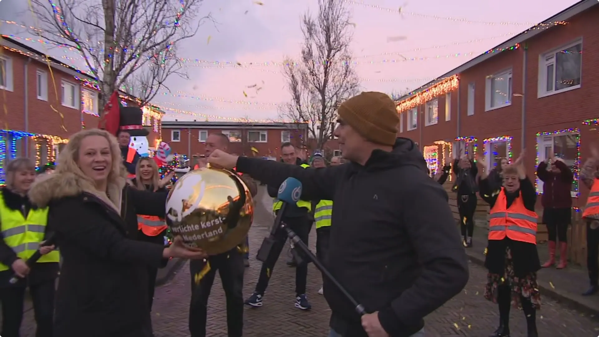 Het goede nieuws wordt in de wijk onder luid gejuich van de bewoners ontvangen. "Fantastisch toch? We hadden het wel verwacht ook. We hebben hier sinds 1 november al lampjes hangen en ik denk dat hier al 20.000 mensen door onze wijk zijn gereden", vertelt buurbewoonster Angela Mebius. Bijna ieder huis in de wijk is versierd met kerstverlichting. "Wij hebben dan ook niet een kerststraat, maar een complete kerstwijk." De straat kreeg ruim 9.000 van de in totaal 15.500 stemmen. "Dat is onvoorstelbaar. Geen woorden voor."
