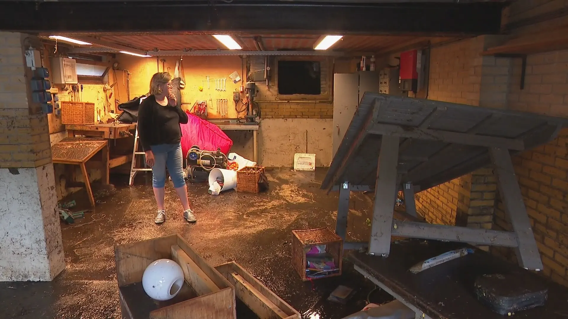 "Het water had zoveel kracht dat alles wat in de garage stond is opgetild en bij het leeghalen weer neergekomen is. Ook de hele onderkeldering van het huis stond vol. De brandweer is erbij geweest." De vrouw heeft in alle commotie maar enkele uren geslapen. "Al het geregel dat erbij komt en de rotzooi overal, het geeft een heel onrustig gevoel. Ik begin het nu pas een beetje te beseffen allemaal."