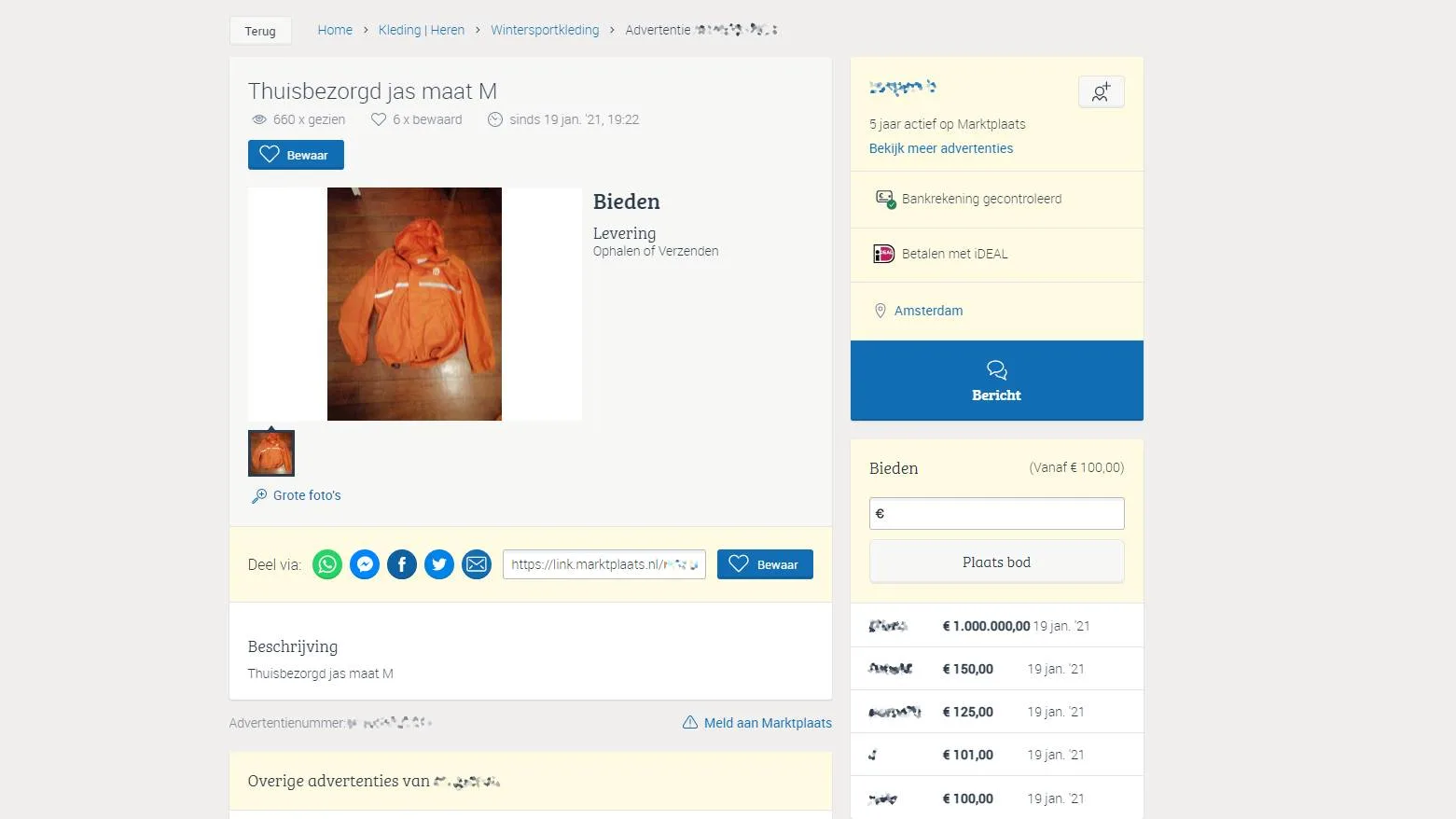 En het loopt storm, op tientallen advertenties is al geboden. "Mijn bericht staat nog maar een paar minuten op Marktplaats en ik ben al een paar keer gebeld door geïnteresseerden", zegt Henk, die zijn Thuisbezorgd-jas verkoopt. "Net is al 100 euro geboden."