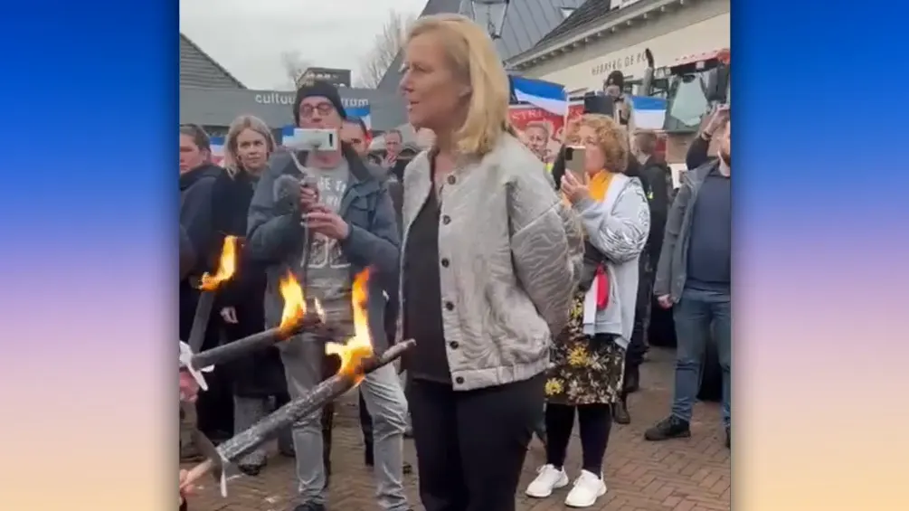 Op de beelden hieronder is te zien hoe D66-leider Kaag afgelopen zondag werd opgewacht door tientallen mensen, sommige hadden fakkels mee.