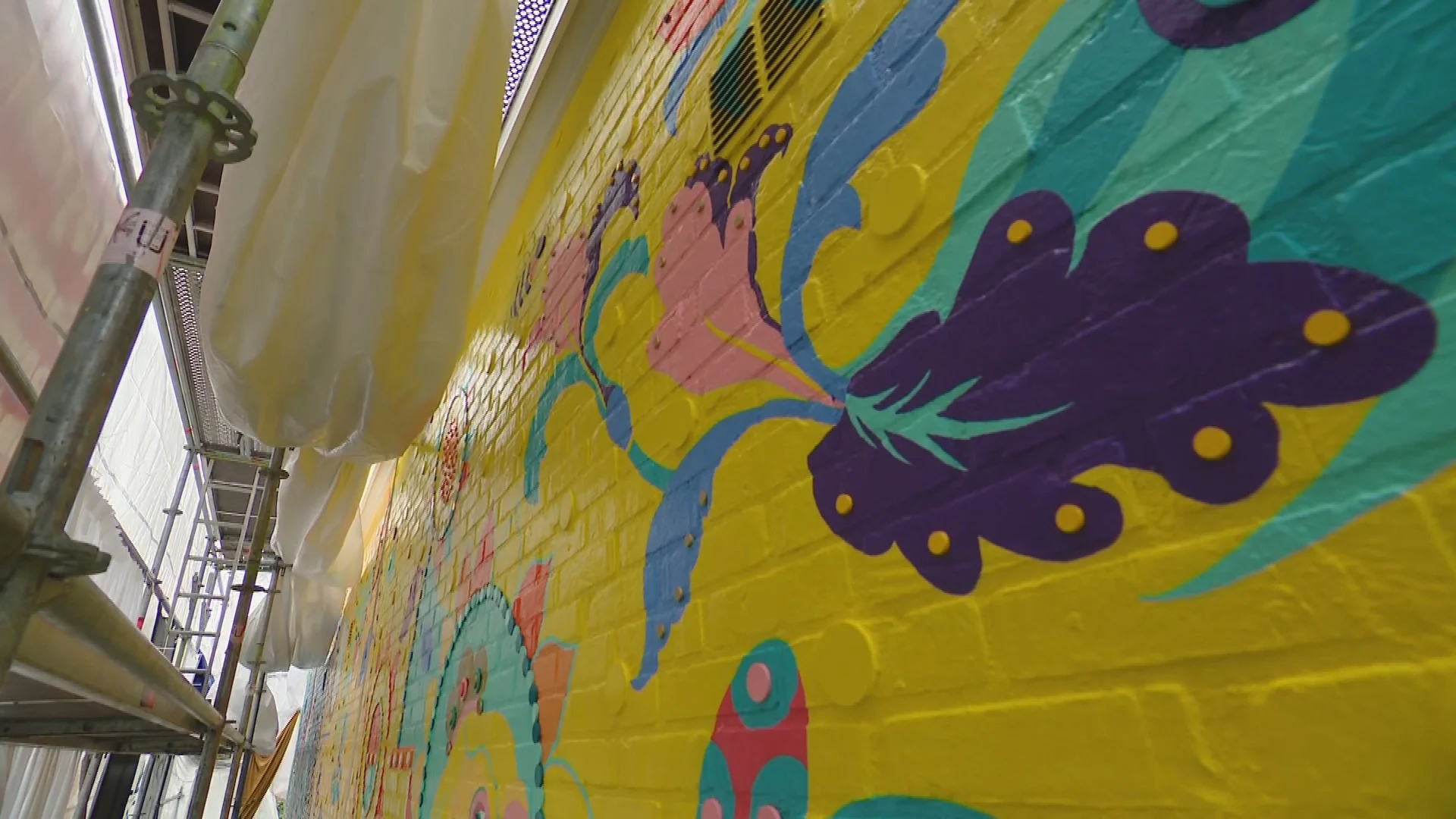 De felgekleurde muurschildering, 13 meter breed en bijna 5 meter hoog, was bedoeld als een cadeau aan de buurt. Kunstenaar Dejo van collectief Toyisme werkte er maanden aan, samen met drie collega’s. Maar nog vóór het doek officieel wordt onthuld, kreeg het team van de gemeente te horen dat het werk illegaal is.