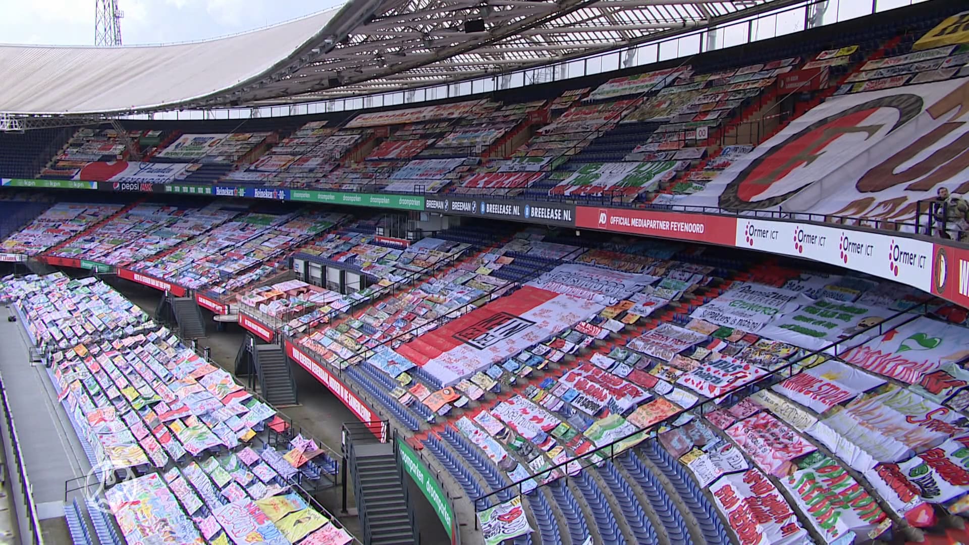 Net nu alle 47.000 stoeltjes in De Kuip zijn gevuld met spandoeken, moeten ze weg. Het Rotterdamse stadion is op 18 april decor van de bekerfinale Ajax-Vitesse, en moet leeg worden opgeleverd. Met pijn in het hart kleedden supportersverenigingen de tribunes vandaag weer af.