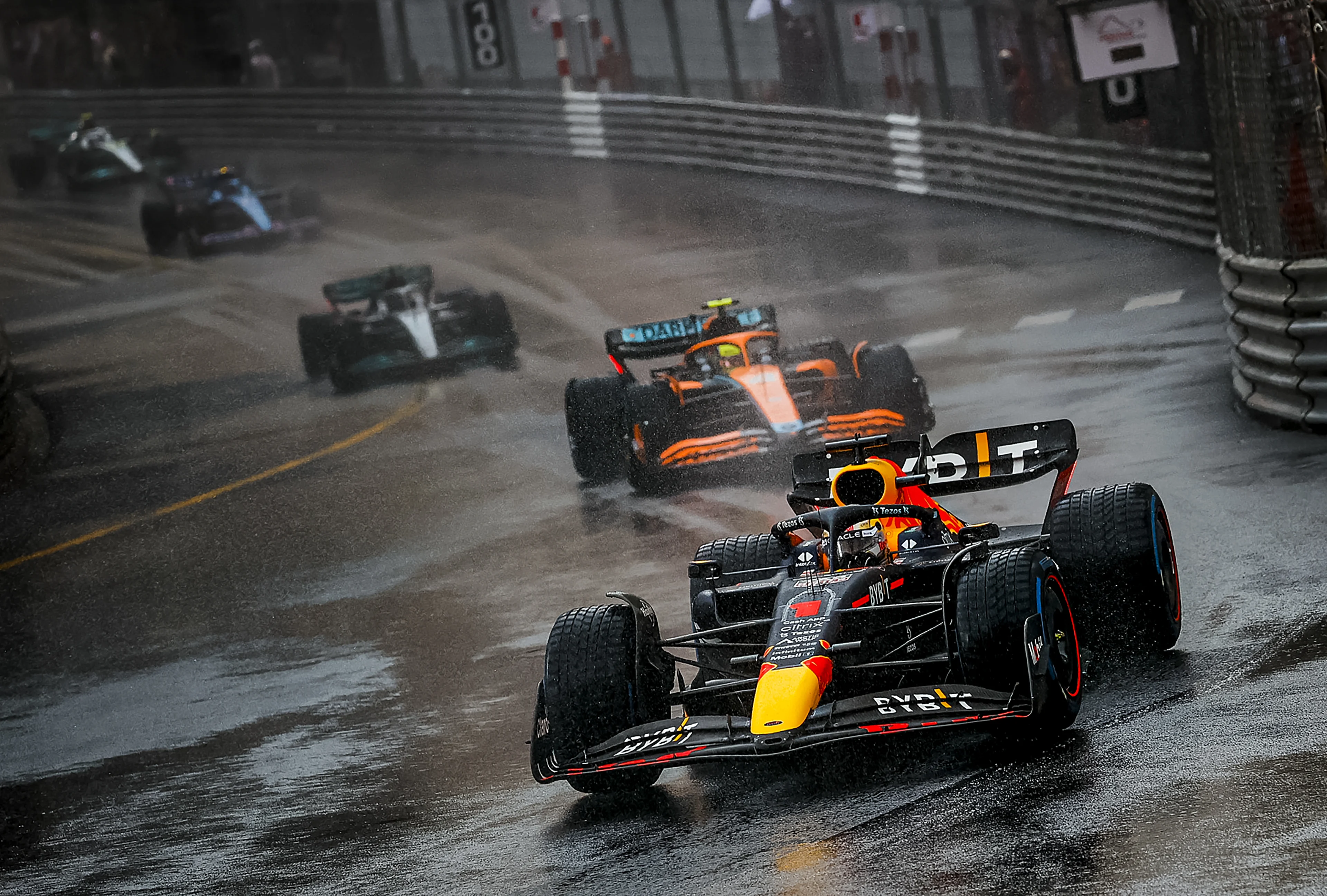 Max Verstappen en de andere coureurs zouden in Monaco om 15.00 uur beginnen aan de race door de nauwe straten van het prinsdom, maar kort daarvoor begon het flink te regenen. De raceleiding besloot de start in eerste instantie met minimaal een kwartier uit te stellen, zodat de monteurs bij alle auto's de regenbanden konden monteren.
