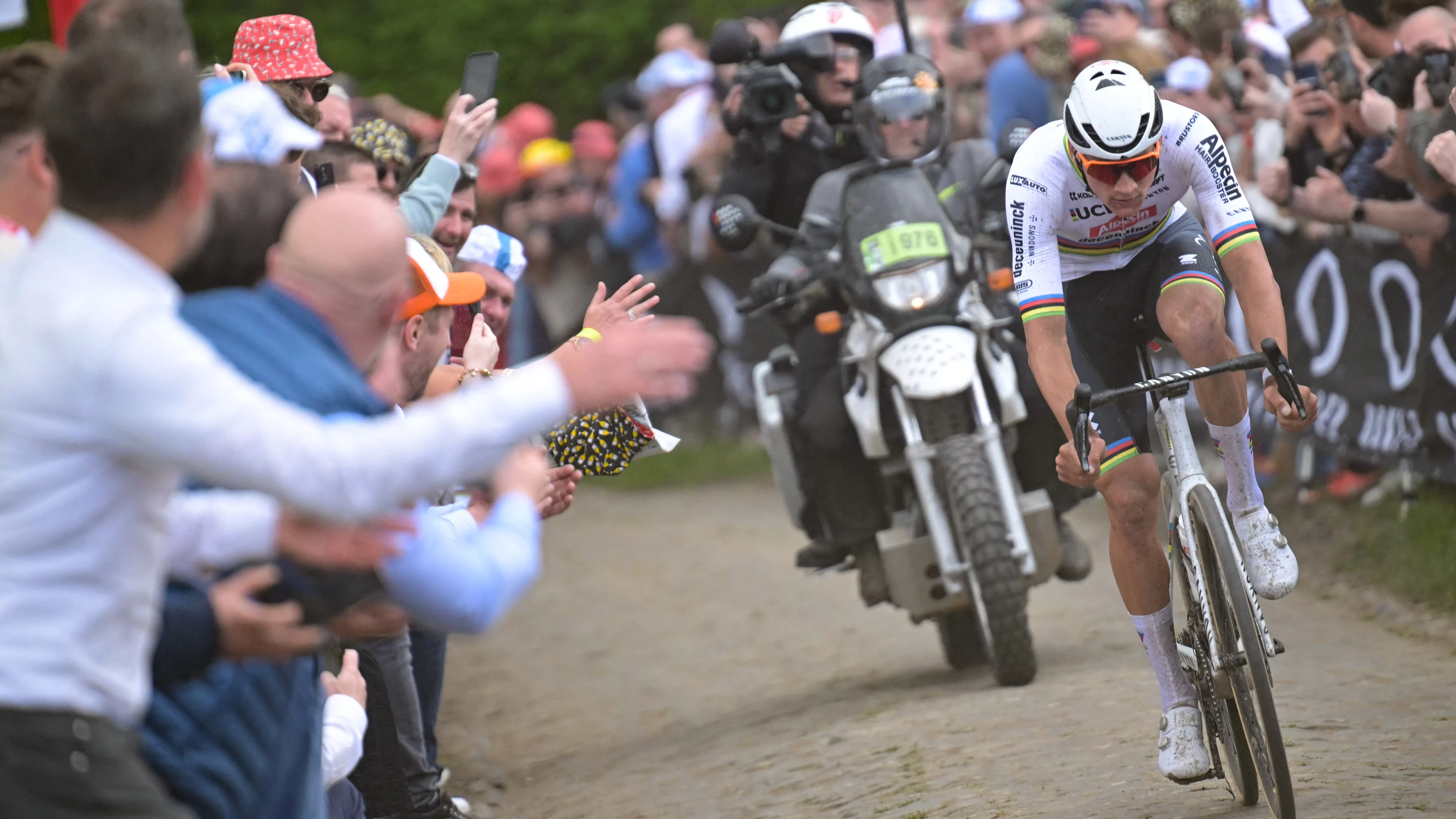"Dit is niet per se een klassieker waar mijn hart sneller van gaat kloppen", vertelde de wereldkampioen van Alpecin-Deceuninck kort voor de start bij de NOS. "Vlaanderen ligt me beter. Ik moet er altijd even inkomen hier. Die kasseien zijn een aanslag op je lichaam, maar als er eenmaal een schifting is vind ik het wel leuk."