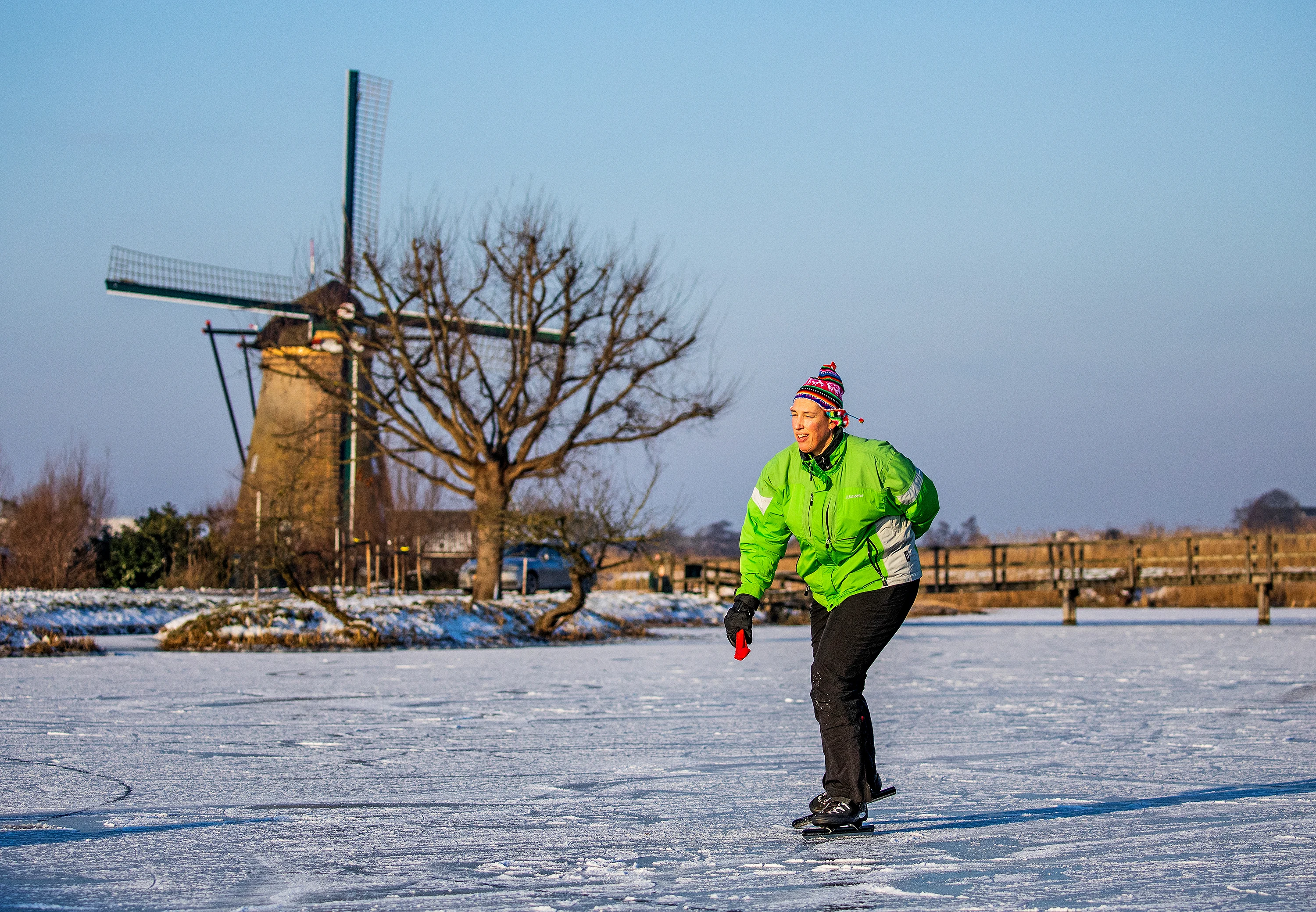Uit Kinderdijk komen voor acht uur vanmorgen al berichten dat de parkeerplaatsen overvol zijn. Toegangswegen worden afgesloten om de schaatsdrukte binnen de perken te houden. De familie Hardenbol was er vanmorgen op tijd bij en adviseert liefhebbers die nog onderweg zijn een ander plekje op te zoeken.