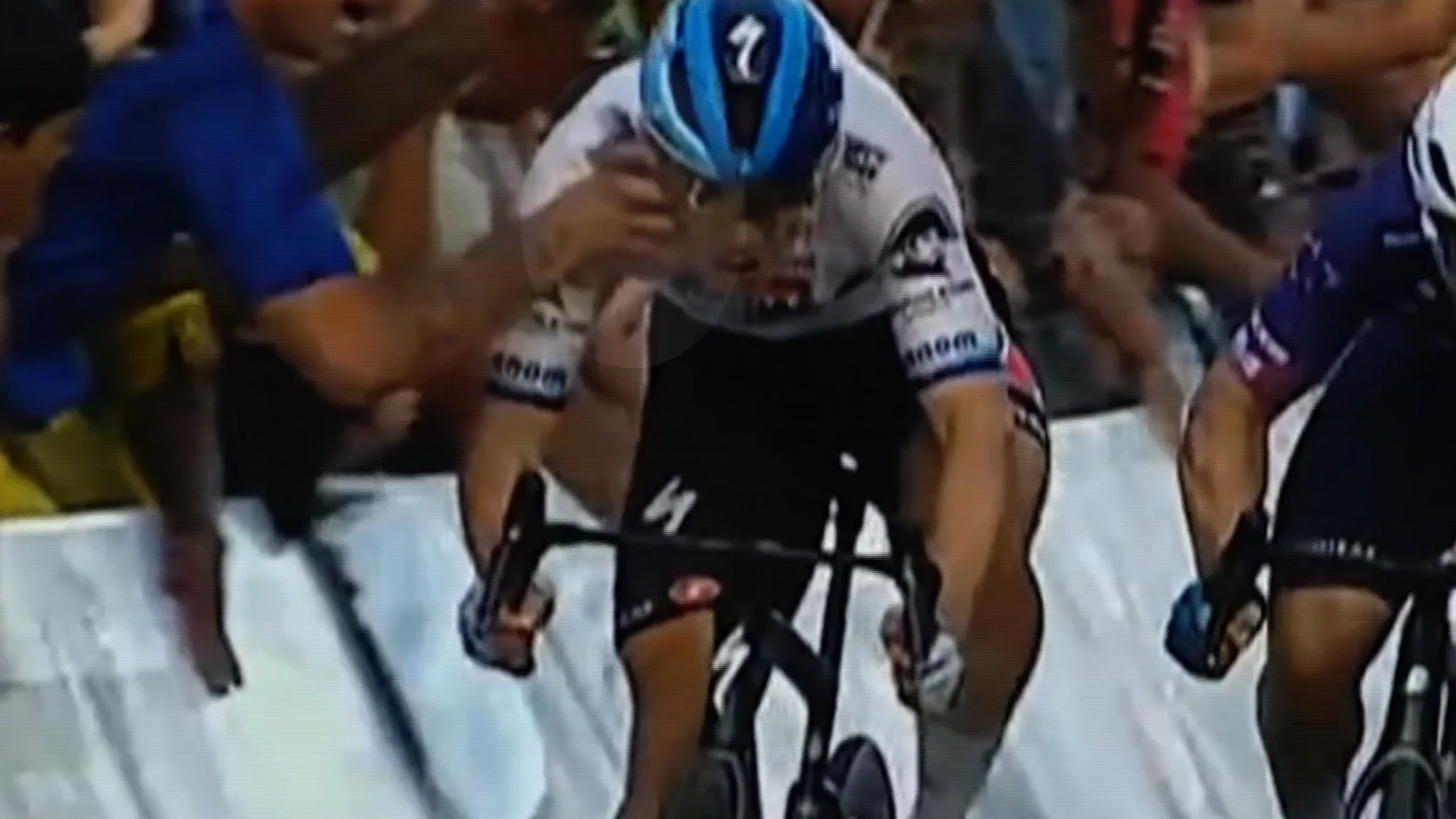 Volgens Sporza werd de toeschouwer, die z'n hand uitstak om met een telefoon de sprint vast te leggen, door de Argentijnse politie meegenomen voor verhoor. Jakobsen won afgelopen week de tweede etappe in de Ronde van San Juan.