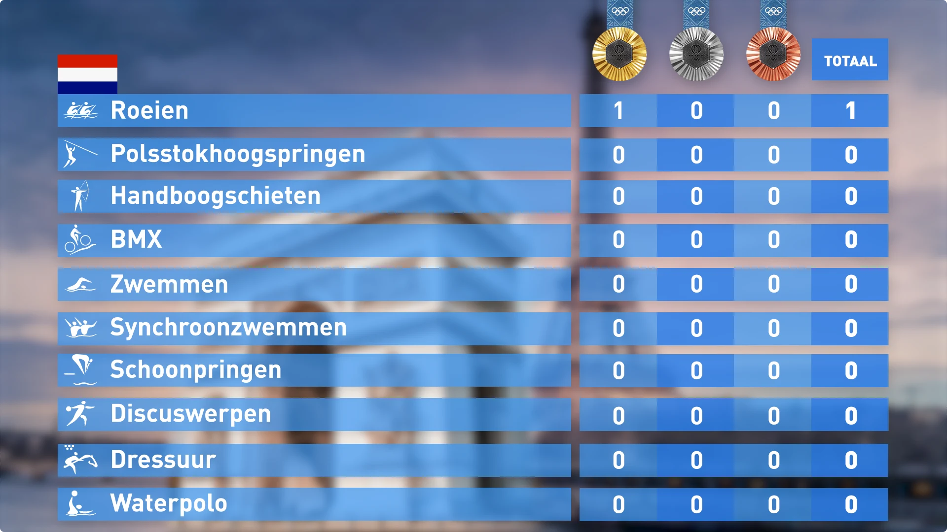 Door de eerste medaille voor TeamNL ziet de medaillespiegel er nu zo uit: