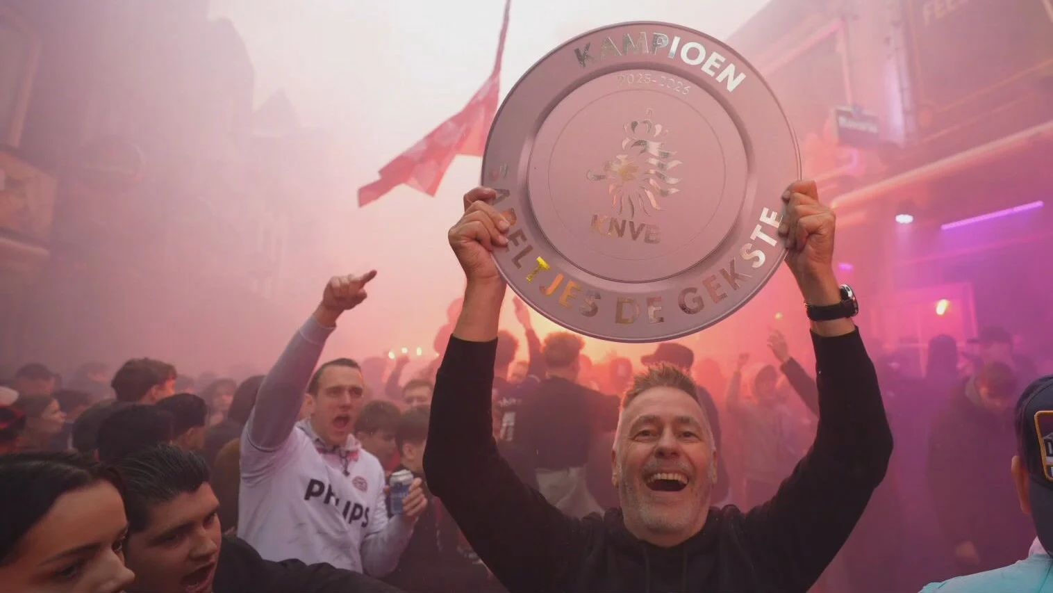 In de binnenstad van Eindhoven barst is het feest losgebarsten nadat PSV de landstitel heeft gewonnen. De gemeente feliciteert de club met het kampioenschap en kondigt aan dat de huldiging dinsdag is. Volgens een correspondent reden de eerste trucks met podiumdelen al het Stadhuisplein op binnen minuten na het fluitsignaal.