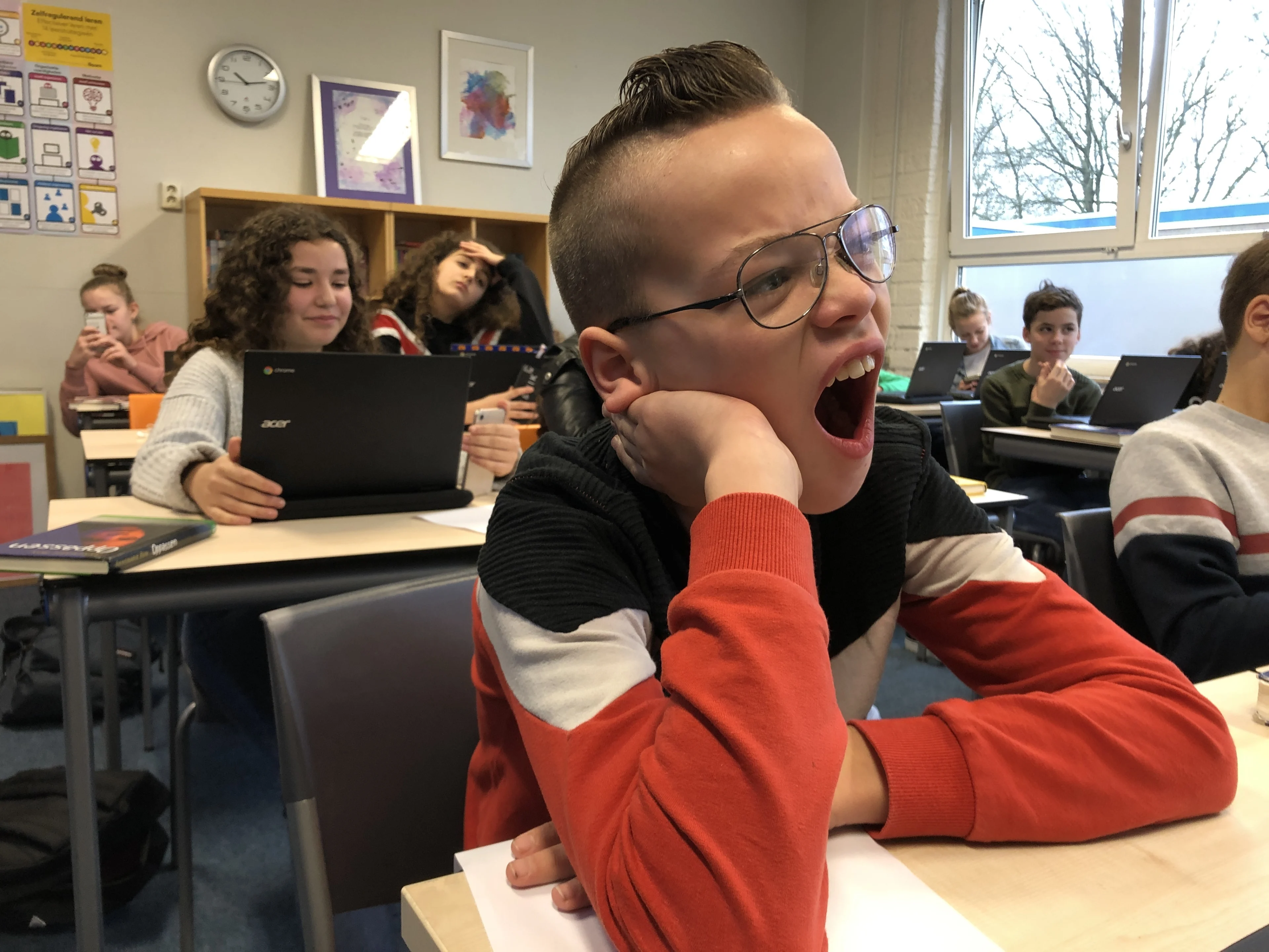 Een puber heeft volgens onderzoek negen uur slaap per nacht nodig. De slaap-waakcyclus verschuift daarmee naar een later tijdstip. Houd je hier geen rekening mee, dan bestaat de kans op chronische moeheid. Dit merkten de leraren van het Greijdanus College dan ook aan gapende, niet oplettende leerlingen. "Onderling bespraken we dit gapen al," vertelt directeur Martin Brouwer. "Voordat we nu echt beginnen met de schooldag, is het vaak al half tien; het halfuur daarvoor is opstarten, de christelijke dagopening en mentoraat." Het beginnen om 9 uur 's ochtends is goed doordacht. "Een uur scheelt al heel veel, anders zijn de leerlingen pas om kwart over vier thuis en komen ze in de knel met hun bijbaantjes." Daarom is om 10 uur beginnen geen optie, al zien sommigen dat wel zitten. Lees ook: Moeten we toch flexibele schooltijden toestaan? Een leerling komt lachend het schoolplein op fietsen. Hij is zeer tevreden met de nieuwe tijden. "Je kan langer je concentratie erbij houden dan als je net uit je bed komt gestrompeld." Een andere jongen haalt steeds betere cijfers. Ook is er natuurlijk een groep die het vooral gewoon 'heel chill' vinden om langer te kunnen slapen.