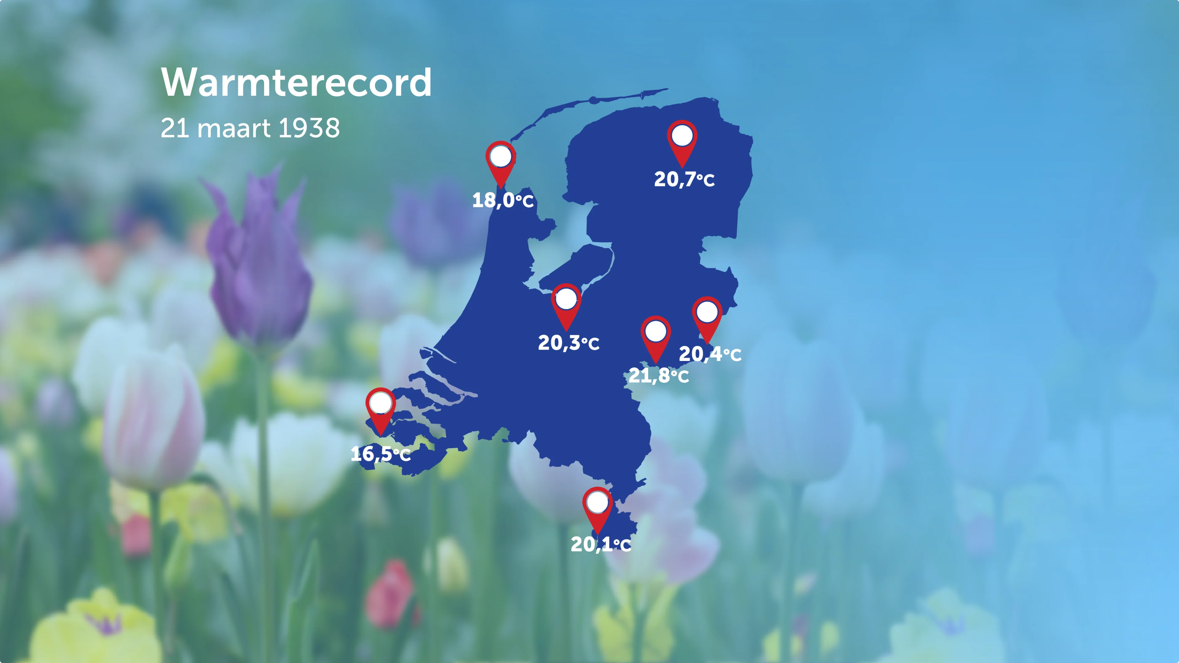 De warmterecords worden vrijdag verpulverd. Deze staan op 1938. Toen werd het in De Bilt 20,3 graden en in het Achterhoekse ’s Heerenberg 21,8 graden. Vrijdag zitten we daar nog een graad of 2 boven. Het zou alweer de vierde dag zijn dit jaar met een recordhoge maximumtemperatuur, na 21 februari en 7 en 8 maart.