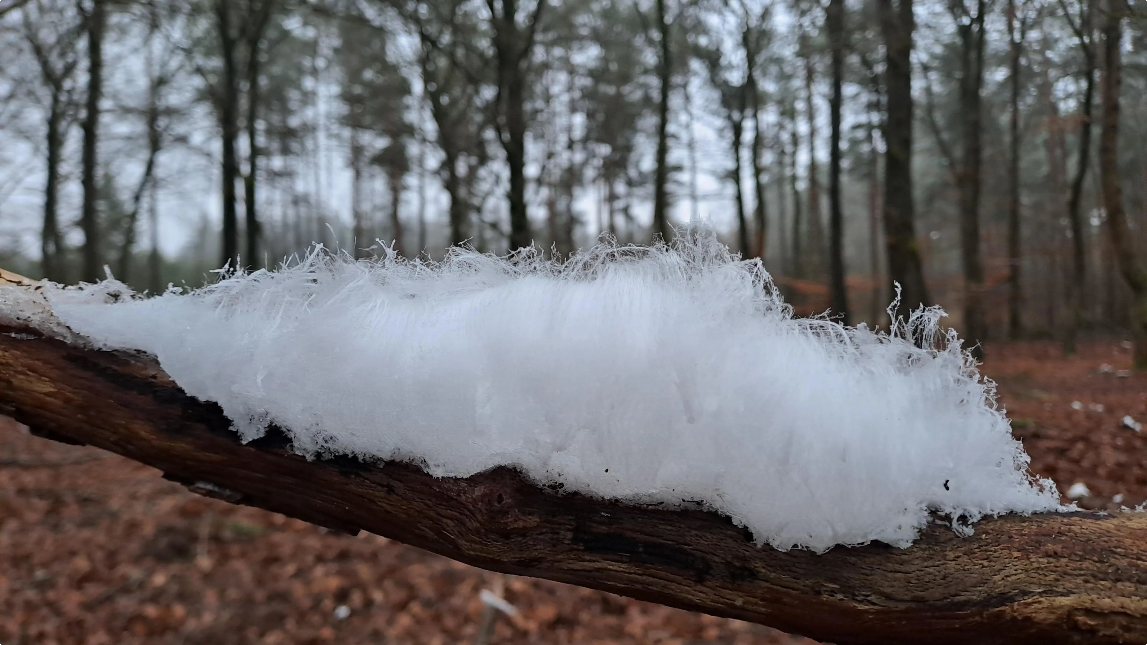 Door een hogedrukgebied boven ons land, gevuld met koude en vochtige lucht, was het de afgelopen dagen grijs en kil. Omdat het ook overdag bleef vriezen, was er sprake van de eerste ijsdagen, en dat leverde in de natuur fraaie beelden op. Zogenaamd ‘ijshaar’ was op verschillende plekken te zien.
