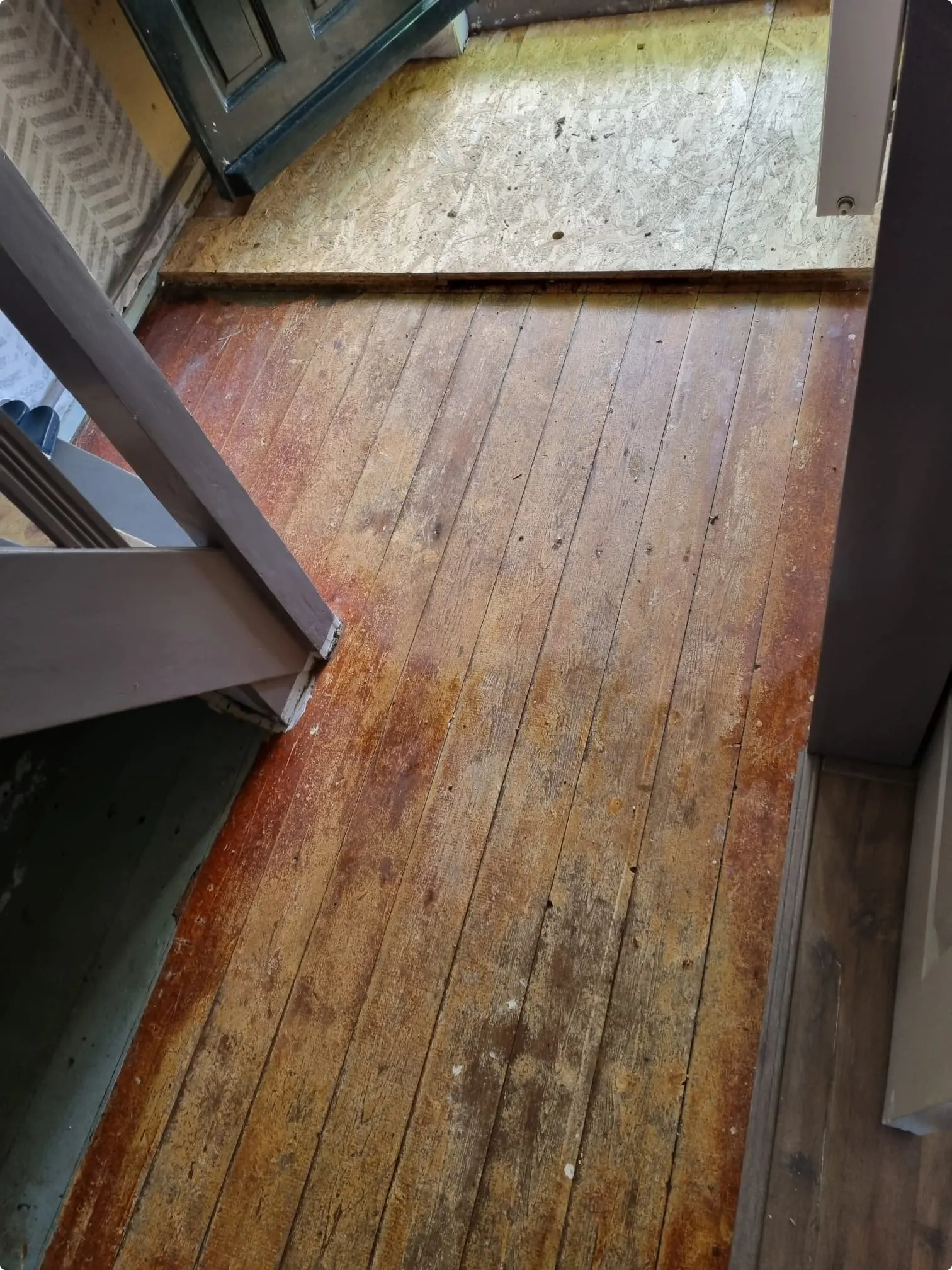 "Het is onwerkelijk, want alles staat op zijn kop in huis." Petra haar gang is helemaal kaal. Al het laminaat is eruit en ze loopt nu noodgedwongen op de oude houten vloer. Het duurt nog weken voordat de kelder behandeld kan worden. Ook de stank in huis en op straat is niet te harden.