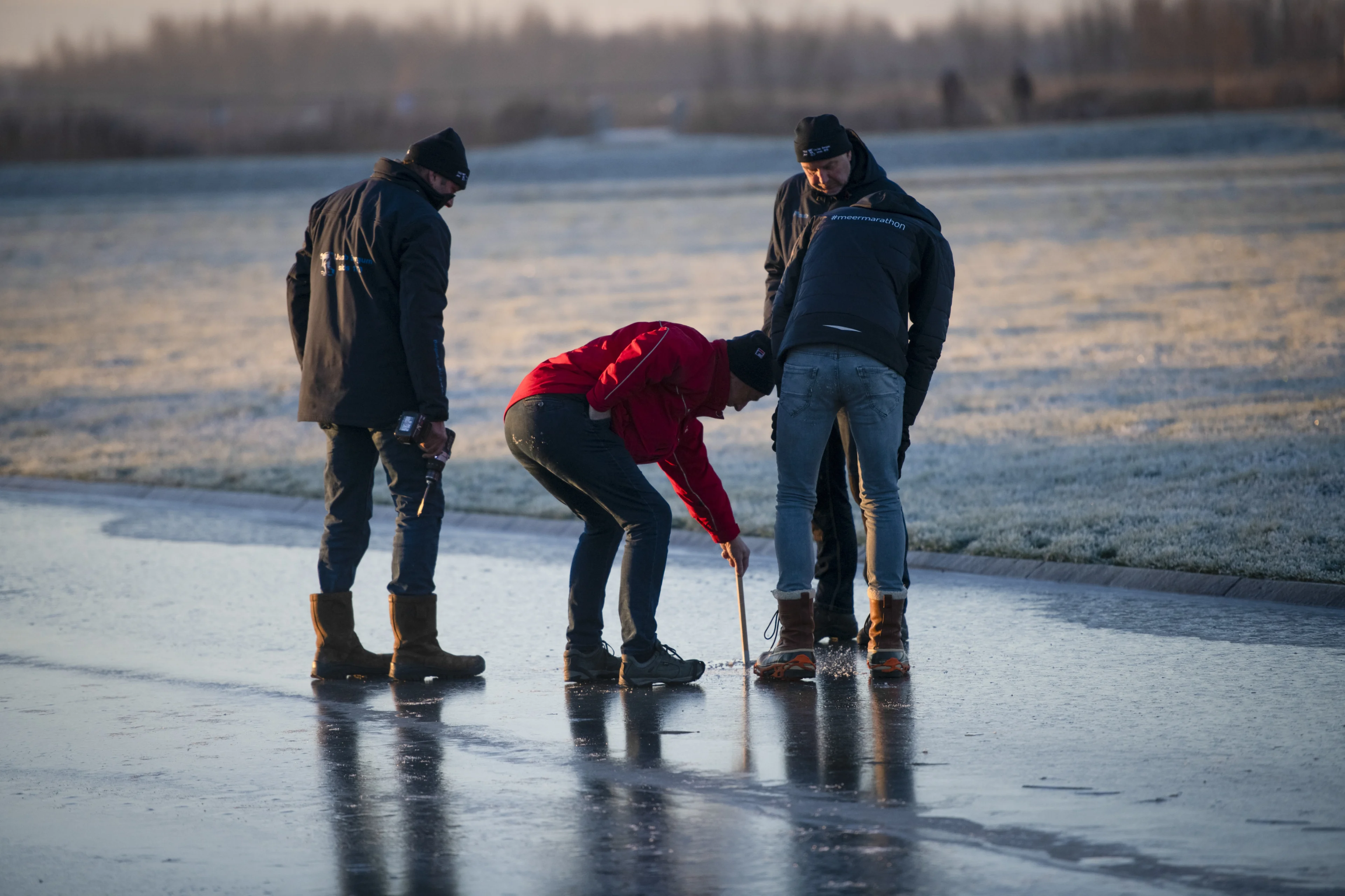 Noordlaren wilde aanvankelijk donderdagochtend een marathon houden, maar de organisatie blies het af vanwege te geringe ijsgroei. Mogelijk gaat Hut vrijdagochtend opnieuw de ijsdikte meten op de Groningse ijsbaan.