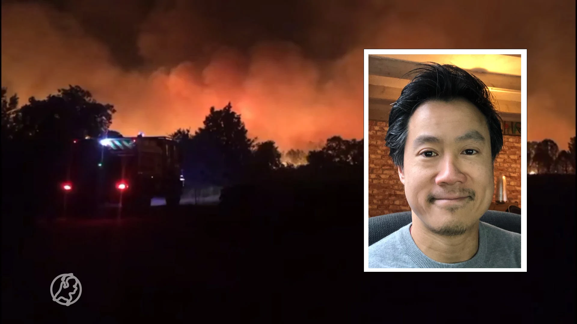 De camping waar Youbons familie verbleef ligt op een heuvel. "We zagen vrij in de verte al een oranje gloed van de brand. Mijn zoon zag dat de Fransen om ons heen gingen inpakken. Je zag de haast in hoe ze auto's hadden ingepakt. Kleppen gingen niet dicht, en alles ging provisorisch dicht met touwtjes."