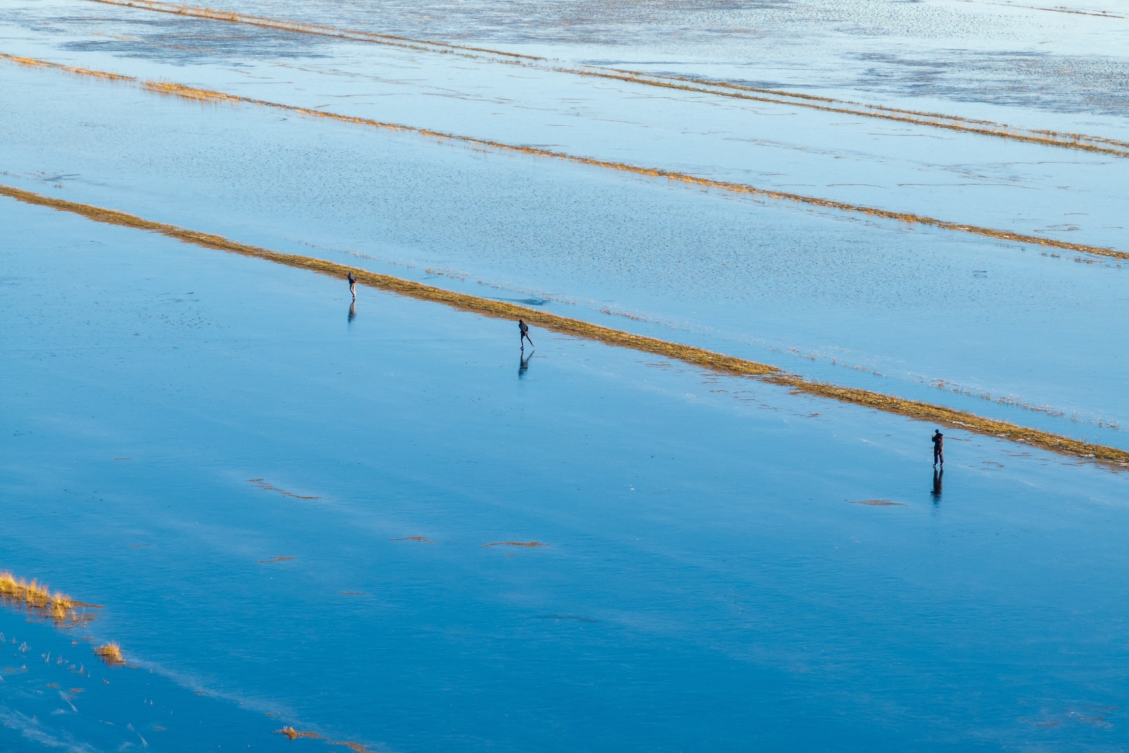 In het Friese Akmarijp halen schaatsers hun hart op. De ondergelopen weilanden in natuurgebied de Blaugerzen hebben door de vrieskou gezorgd voor een enorme ijsbaan.